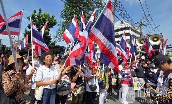 伯乐头条专讯:6月6日上午,约200名抗议者聚集在曼谷柬埔寨驻泰国大使馆外,呼吁柬方尊重泰国国家主权。此次行动由“学生与民众改革泰国网络”组织,现场秩序良好,无冲突事件,活动于11时15分和平结束。