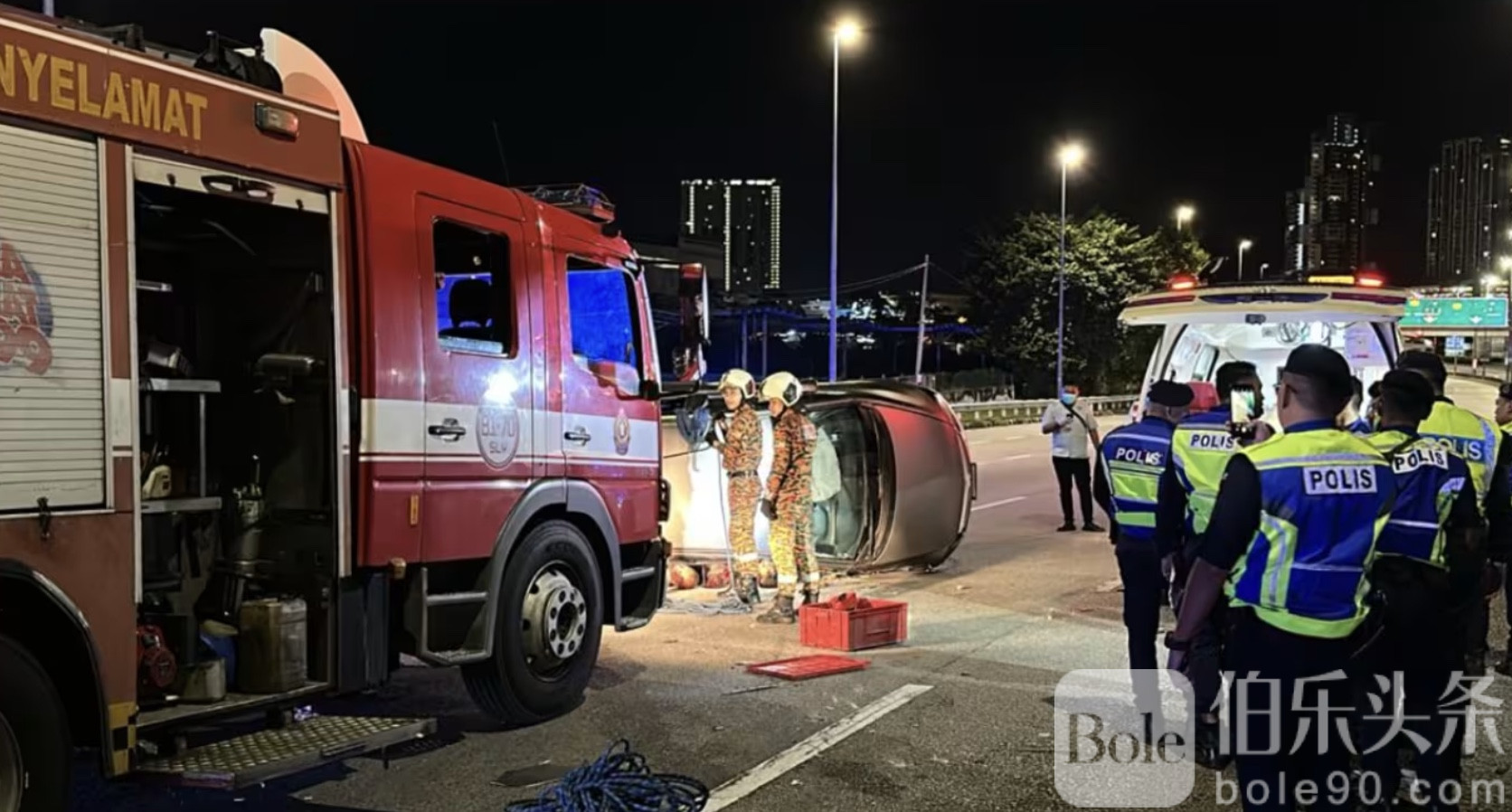 直至加影疏散大道5.1公里处,逃跑车辆撞上分界堤后失控翻覆,警方迅速将三名嫌犯拘捕,并送往医院治疗。据了解,三人年龄介于40至51岁,均在事故中受伤。