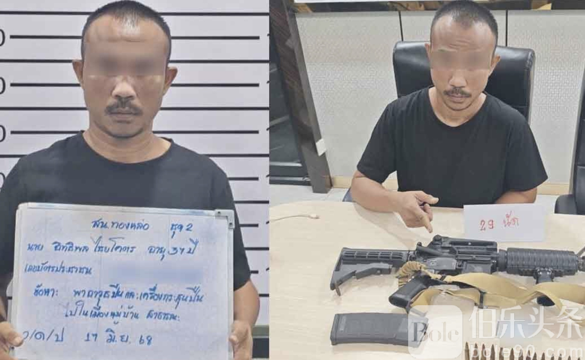 事情发生在6月17日下午2点半左右,曼谷通罗警署接到报警称,一辆白色三菱轿车(牌照 กจ 6075 ศรีสะเกษ)在拉玛四路马里纳大厦前,危险驾驶并对他人公然亮出枪械。警方迅速赶到现场,拦截车辆,发现驾驶人竟是现役边防第22支队警官伊蒂蓬,当时正处于休假期间。