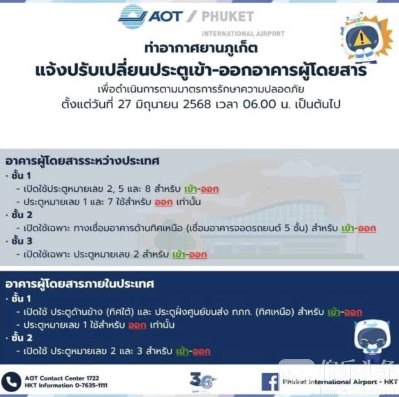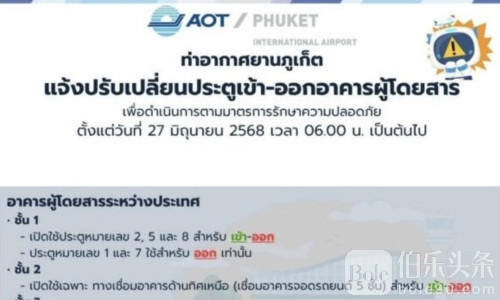 伯乐头条专讯:627日清晨起,泰国普吉国际机场正式启用新的航站楼进出通道安排,以加强安全管理并提升乘客流动效率。此次调整涵盖国际与国内航站楼,自当日早上06:00起执行,机场方面提醒旅客务必提前23小时抵达,以免因走错通道耽误行程。