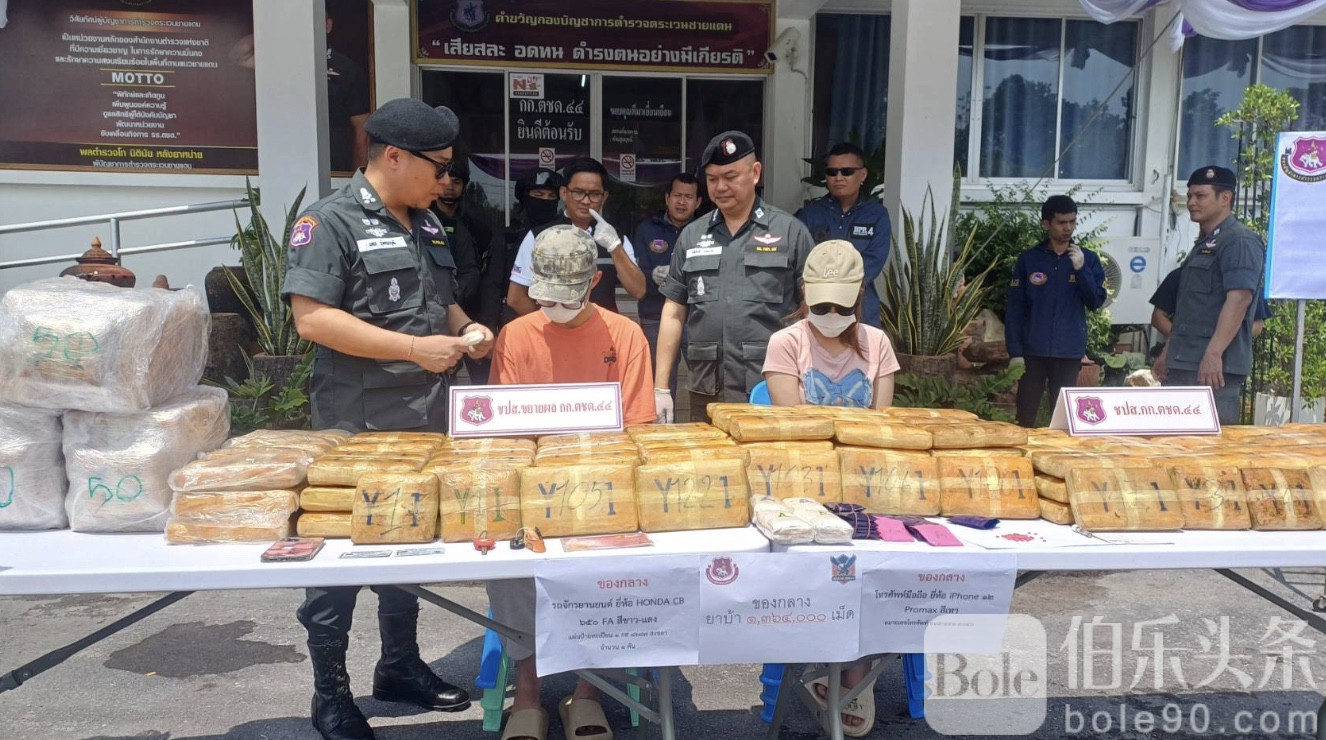 伯乐头条专讯:泰国南部再爆震撼毒品大案!6月27日,泰国边境警察第4区与禁毒局联合召开发布会,宣布成功捣毁一个通过社交软件Line贩卖毒品的大型网络,现场缴获多达136万粒“疯药”(甲基苯丙胺片剂),并逮捕一对以夫妻身份合作的毒品中介,案件震惊社会。