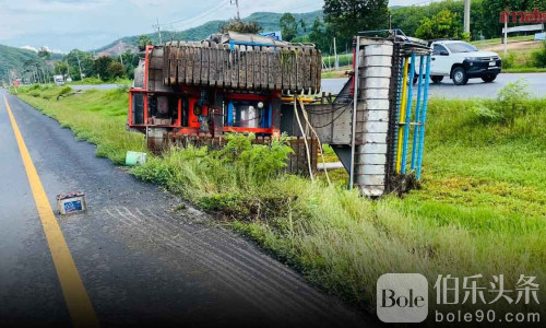 伯乐头条专讯:10月20日,泰国那空是贪玛叻府发生严重交通意外,两名男子在道路旁牵牛锻炼时,一辆装载收割机的卡车因操作不慎失控,收割机从车上滑落,砸中两人和两头牛,造成一人当场死亡,一人重伤送医,另有一头牛死亡。