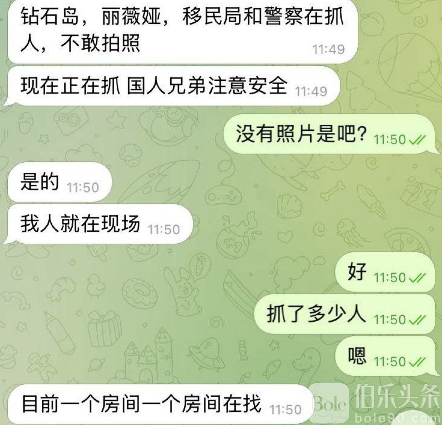 有当地华人社群成员在社交媒体发帖提醒:“钻石岛现在正在抓人,大家千万注意安全!没有护照、签证过期的赶紧避避风头。”