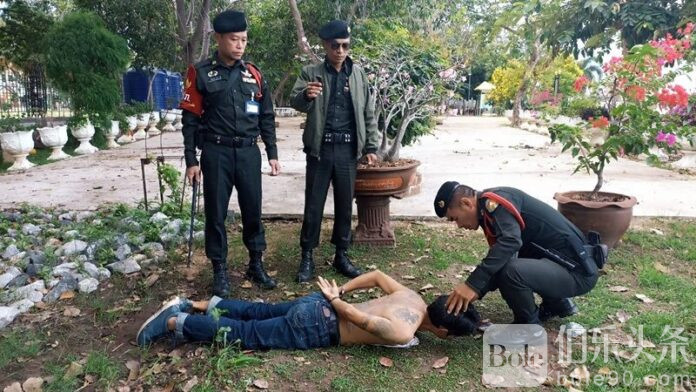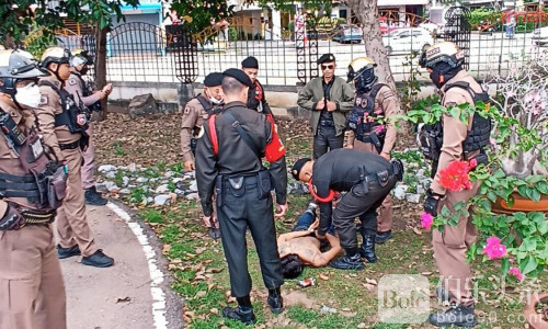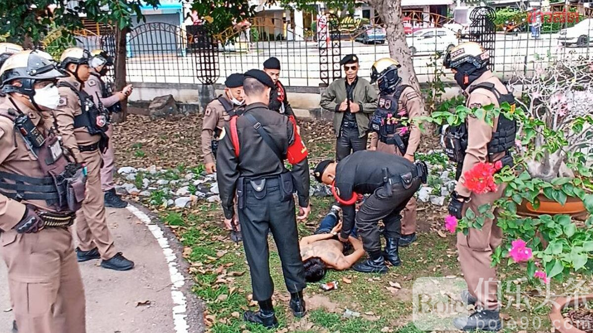 伯乐头条专讯:19日清晨,泰国孔敬市著名公园——บึงแก่นนคร(Bung Kaen Nakhon)发生惊险事件,一名46岁男子因吸毒后情绪失控,持短刀追砍正在园内晨练的市民,幸被现场保安与警方及时制止,未造成人员重伤。据警方通报,当日上午6时40分,保安岗接到报警称有人持刀追砍民众。保安立即联络值班同事并通知警方增援。现场男子名为นายพดล(46岁),手持约10英寸短刀,部分目击者称男子情绪激动并威胁他人。经警方现场处置及战术抓捕,嫌犯被迅速控制。