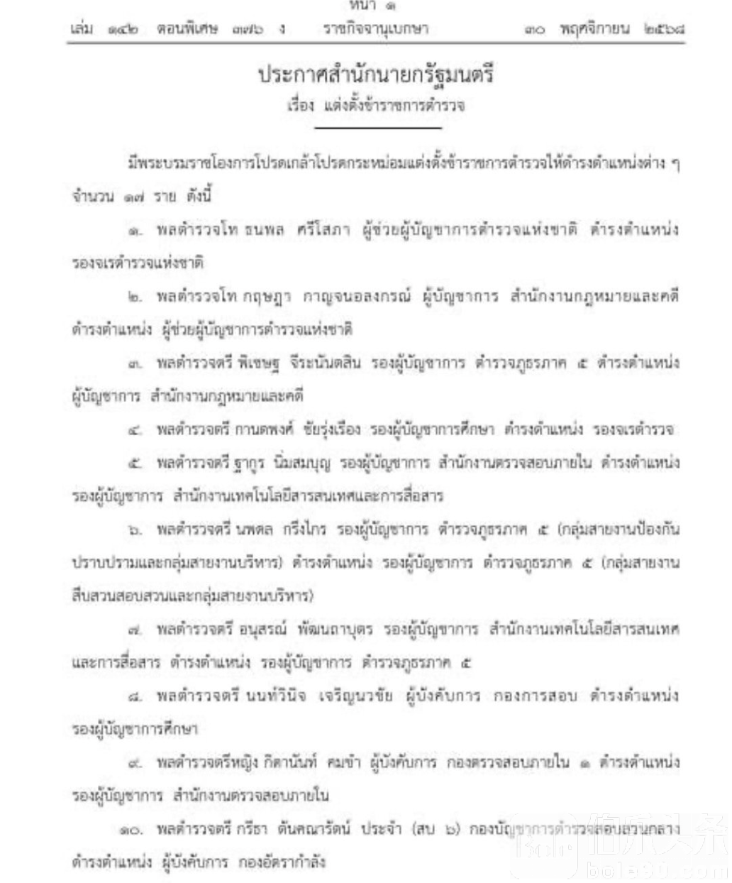 • 披洛姆叻·敦农(Pol. Maj. Gen. Piromrat Donnon):升任内部稽查署 稽查一处总指挥。