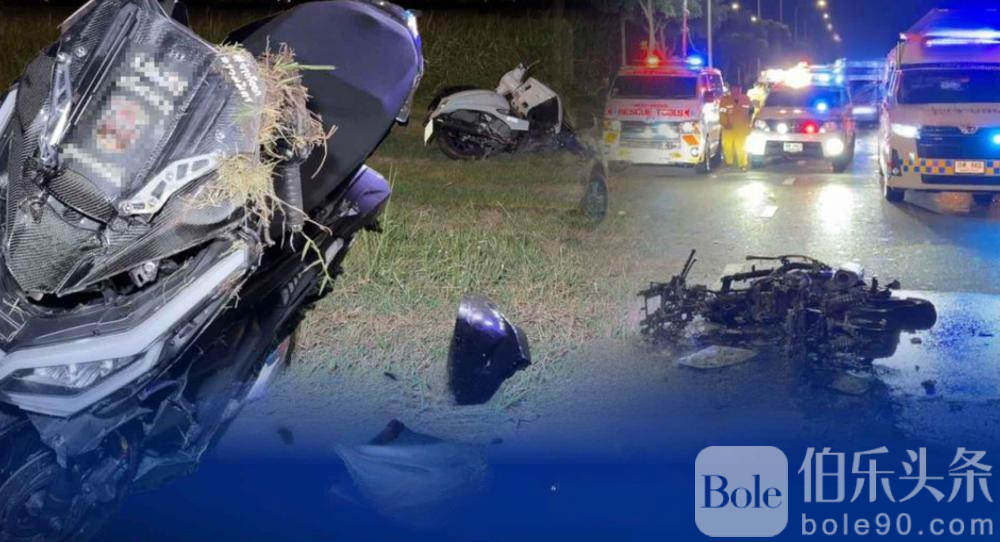 伯乐头条专讯:泰国素万那普机场沿跑道第三路段(邦匹县,春武里府)凌晨发生一起严重摩托车连环碰撞事故,造成两名女性死亡、三名男性受伤,其中一人伤势危重。事故发生时间约为12月15日凌晨1点10分,涉及多辆摩托车高速行驶时相互挂碰倒地,引发剧烈碰撞与车辆起火。