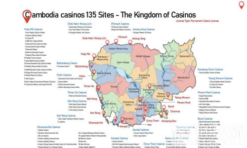 在波贝(Poipet),赌场最为集中,包括Aria Poipet Casino & Hotel、Casino Holiday Poipet、Crystal 07、Dreamworld Casino Poipet、Emerald Poipet等多家大型赌场。磅湛省、特本克蒙省、金边、干丹省、贡布省等地亦布满赌场和度假酒店,西哈努克市及巴域市更是赌场密集区,提供各类博彩娱乐及住宿设施。