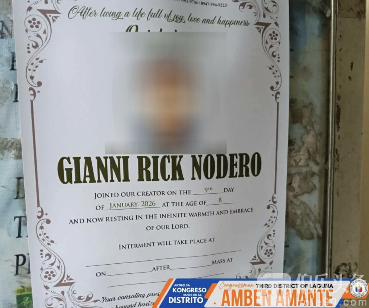 伯乐头条专讯:菲律宾拉古纳省圣巴勃罗市1月9日发生一起令人震惊的恶性案件,一名年仅8岁的三年级男童在家附近被发现遇害,案件性质恶劣,当地警方已介入调查,并控制一名重点嫌疑人。