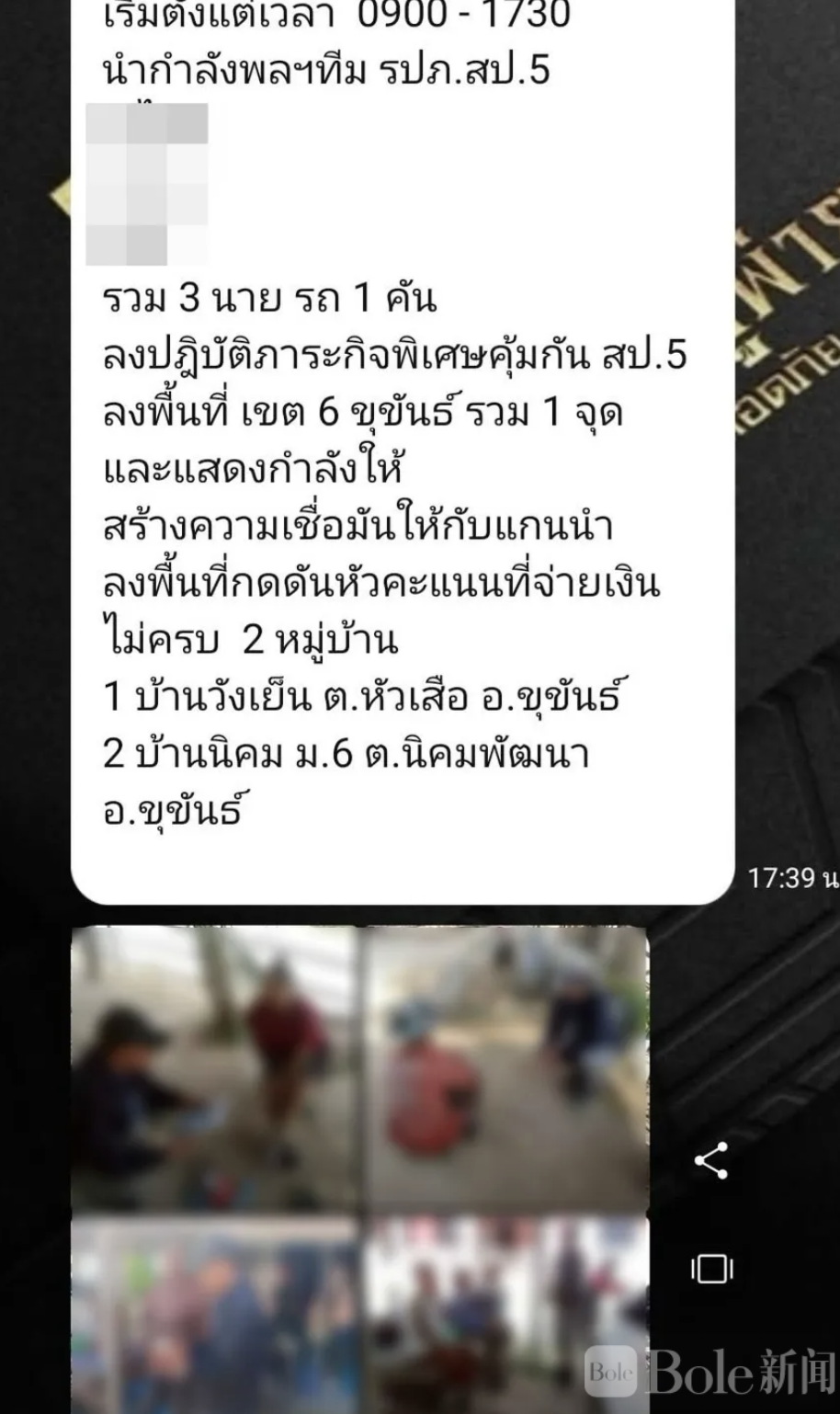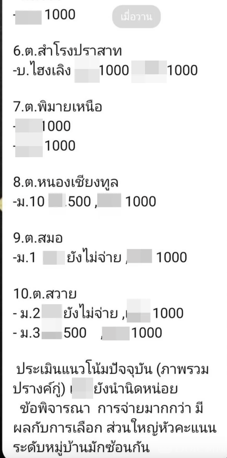 Bole新闻专讯:泰国2026年全国大选正进入白热化阶段,东北部四色菊府突传震撼消息,一组疑似涉及买票与监控对手的聊天记录在社交平台流出,引发当地政坛与选民高度关注,相关内容被指直指大型政党在该府秘密操盘选情。
