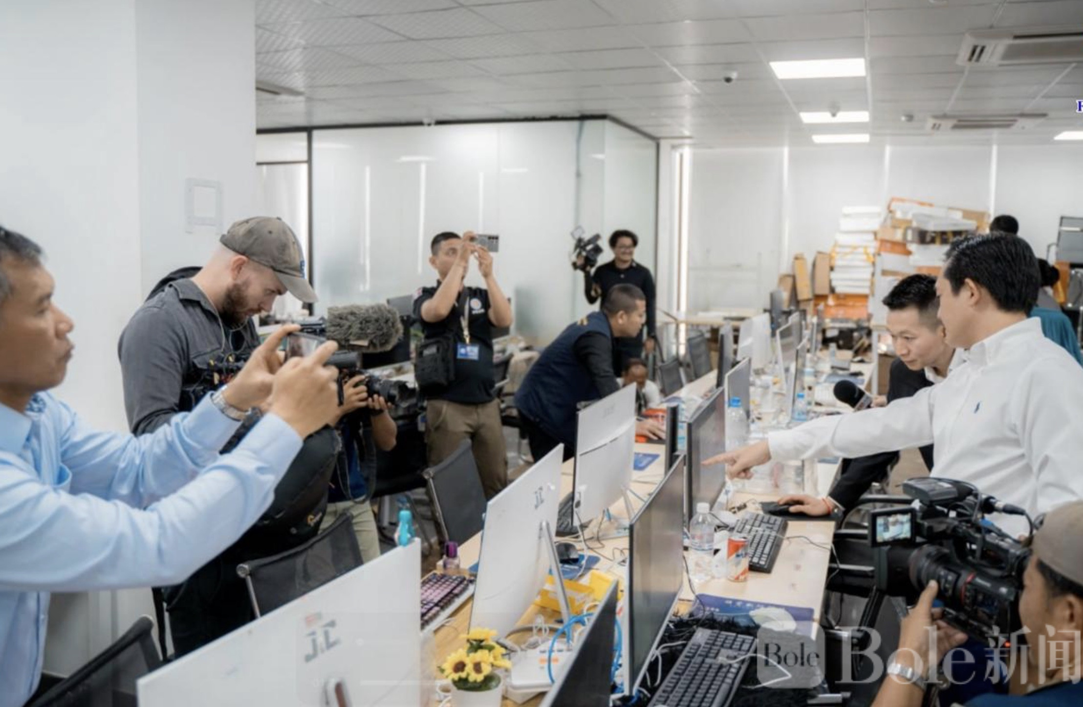 Bole新闻专讯:当地时间3月11日,柬埔寨警方在金边展开针对网络诈骗窝点的执法行动,并罕见邀请约20家国际媒体走进一线进行实地采访。参与报道的媒体包括美联社(AP)、法新社(AFP)、路透社(Reuters)、凤凰卫视、日本电视台以及欧洲新闻图片社(EPA)等主流机构,媒体记者跟随执法人员进入现场,见证警方清剿诈骗据点的全过程。