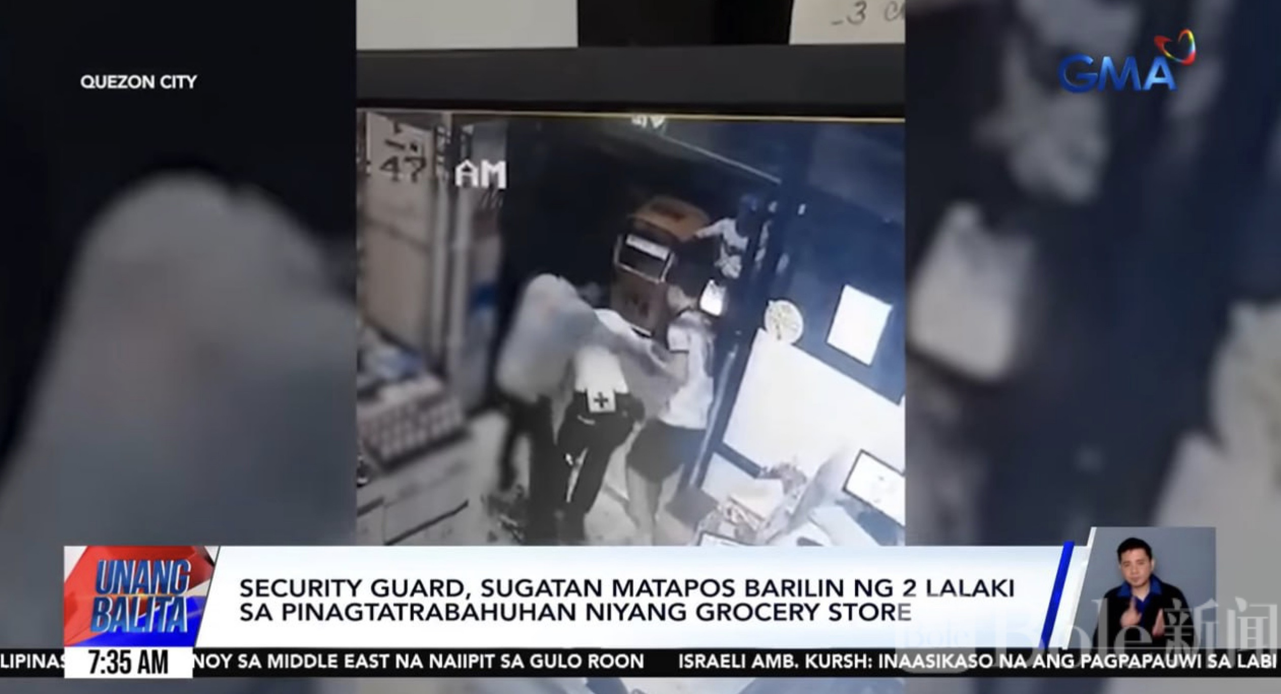 Bole新闻专讯:菲律宾奎松市日前发生一起令人震惊的枪击抢枪事件。一名在超市门口值守的保安凌晨遭两名男子近距离开枪袭击,随后其执勤配枪被抢走,嫌疑人迅速逃离现场。目前警方已展开追捕,案件仍在进一步调查中。
