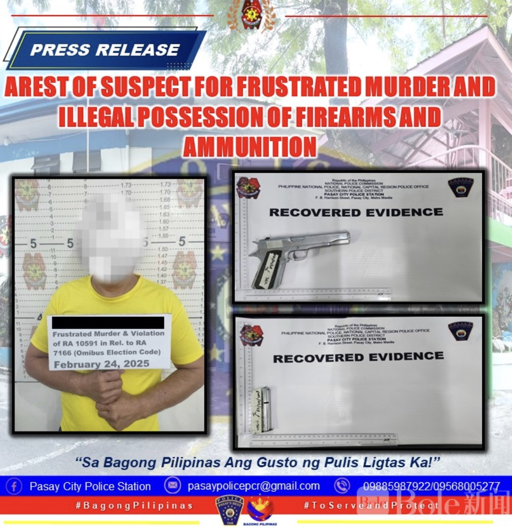 目前,嫌疑人已被关押在警方拘留设施中,检方计划以未遂杀人罪及违反菲律宾枪支与弹药管理法规对其提起指控。案件仍在进一步调查中,警方正核实当时现场情况,以确保对事件经过有完整、准确的掌握。