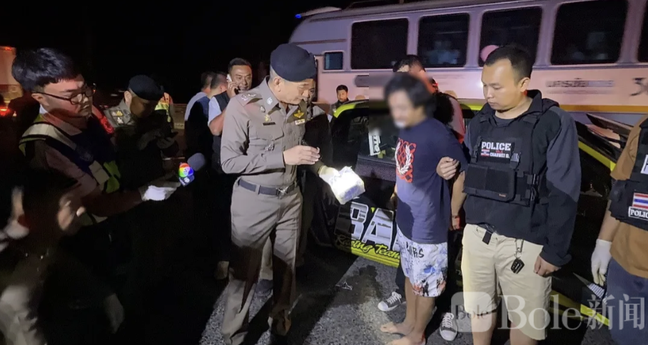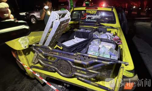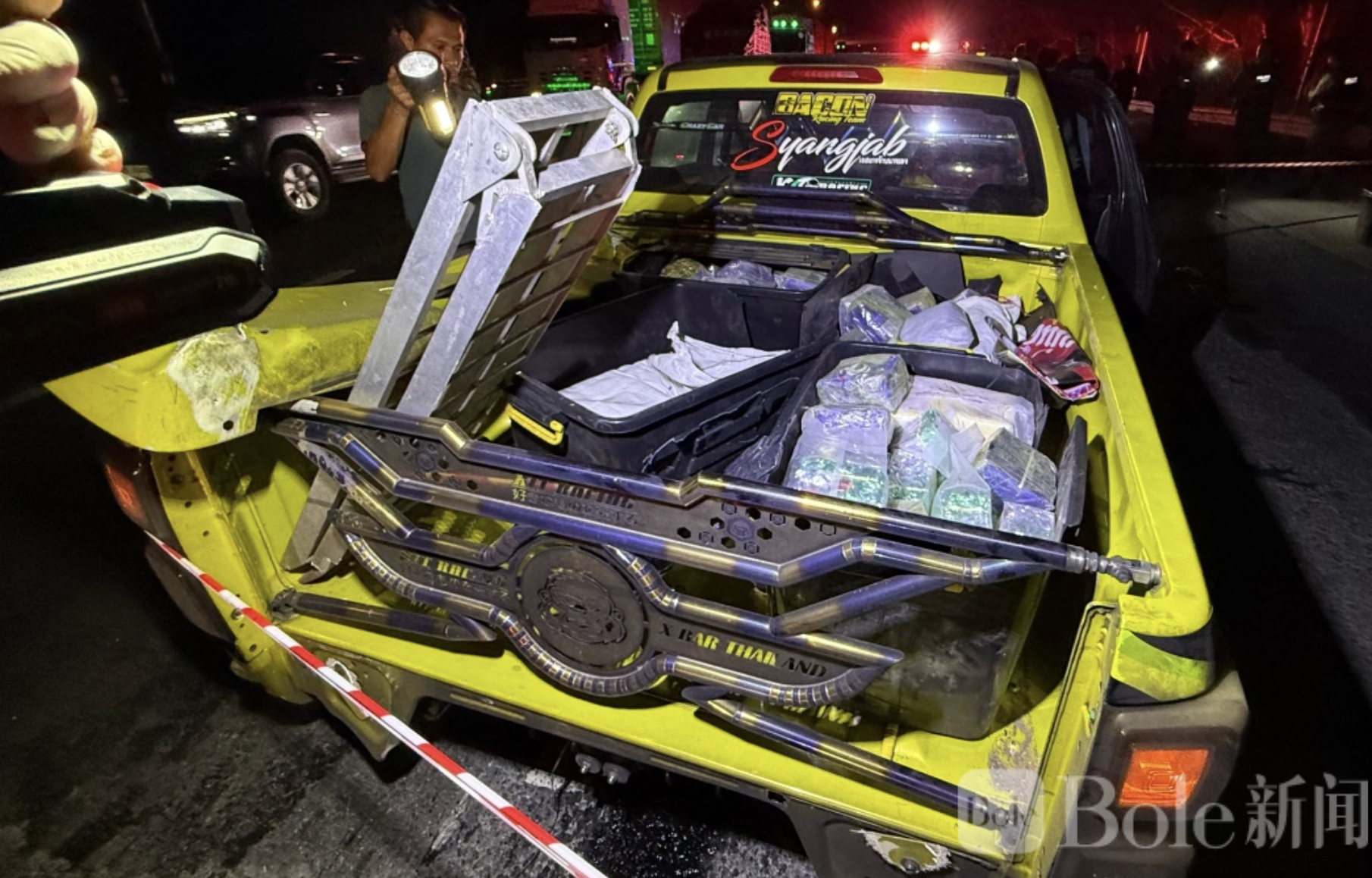 Bole新闻专讯:泰国呵叻府警方成功拦截一辆改装皮卡运毒车,车内藏有多达240万粒疯药及160公斤冰毒,涉案司机在冲卡逃逸过程中失控翻车,最终落网,并供出背后跨境贩毒网络。