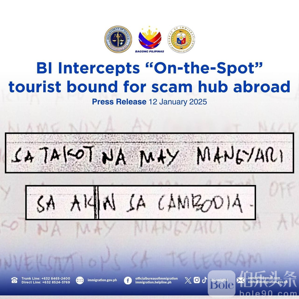 伯乐头条专讯:移民局 (BI) 在尼诺·阿基诺国际机场 (NAIA) 拦截了一名 35 岁的菲律宾男子,据称他被骗到柬埔寨的一个诈骗中心工作。