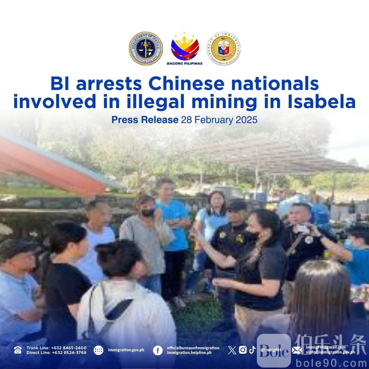 伯乐头条专讯:菲律宾移民局(BI)周六通报,在伊莎贝拉省逮捕了五名涉嫌非法采矿的中国公民。
