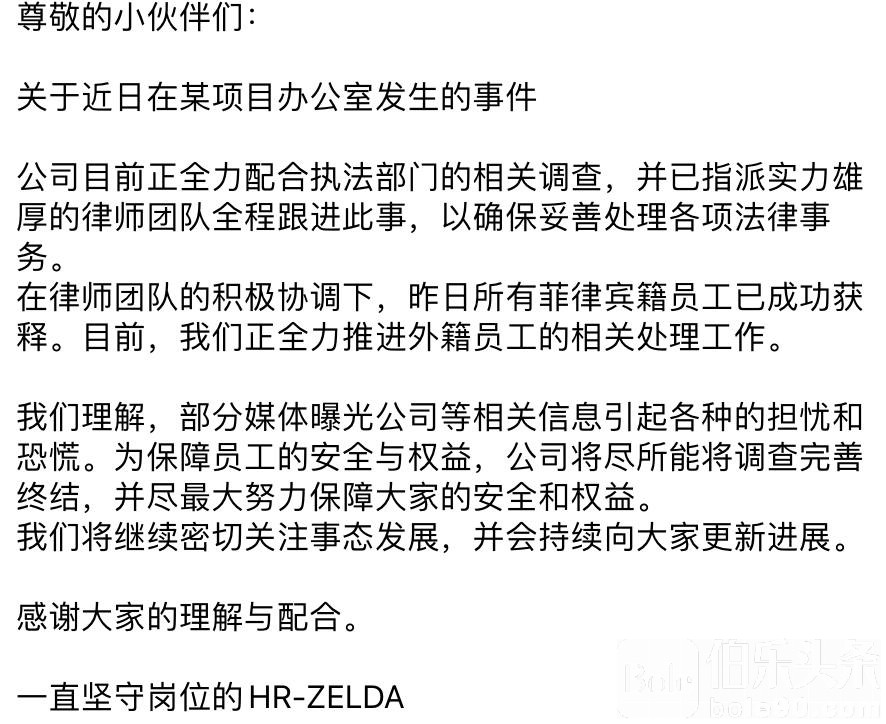 事发后,某G方面立刻发布了内部公告,表面上是安抚员工,称公司已派出强大律师团队全力跟进,菲律宾籍员工已成功获释,外籍员工的情况也在“积极协调”中。然而,明眼人都看得出,这只是为了稳住军心,公告中的“正面情绪”并不能掩盖现场的狼狈。