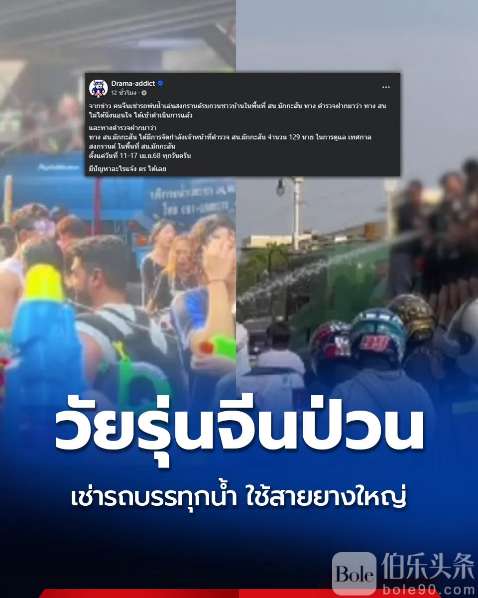 紧接着,4月14日,泰国知名网络主页“Drama-addict”发文公布最新情况称,对于中国游客租运水车玩水且给当地民众带来困扰一事,Makkasan警局并未坐视不管,目前已将事情处理完毕。