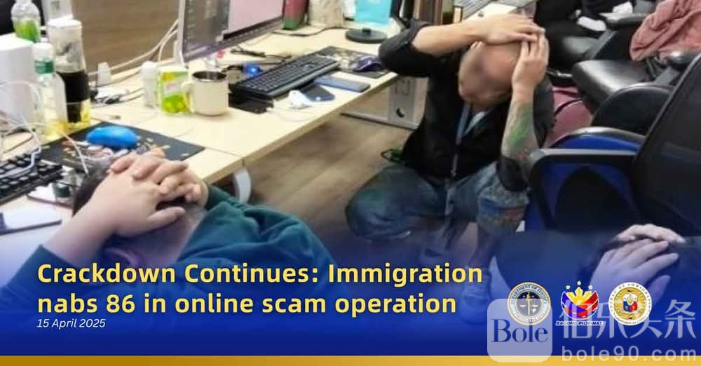 伯乐头条专讯:菲律宾移民局于4月10日在马卡蒂市展开一场针对跨国诈骗团伙的大规模突袭行动,成功拘捕86名外籍嫌疑人。这些人员被指在一处公寓内从事非法网络诈骗作业,其中大多数为中国籍。