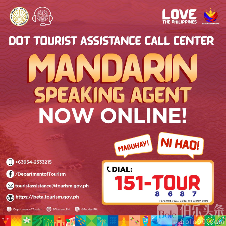 伯乐头条专讯:为进一步优化旅游服务并吸引更多中国游客前来,菲律宾旅游部(DOT)近日宣布,其游客服务热线平台已正式新增普通话(中文)服务。此举标志着菲律宾在提升国际游客服务水平、强化对华旅游市场战略中的又一重要动作。