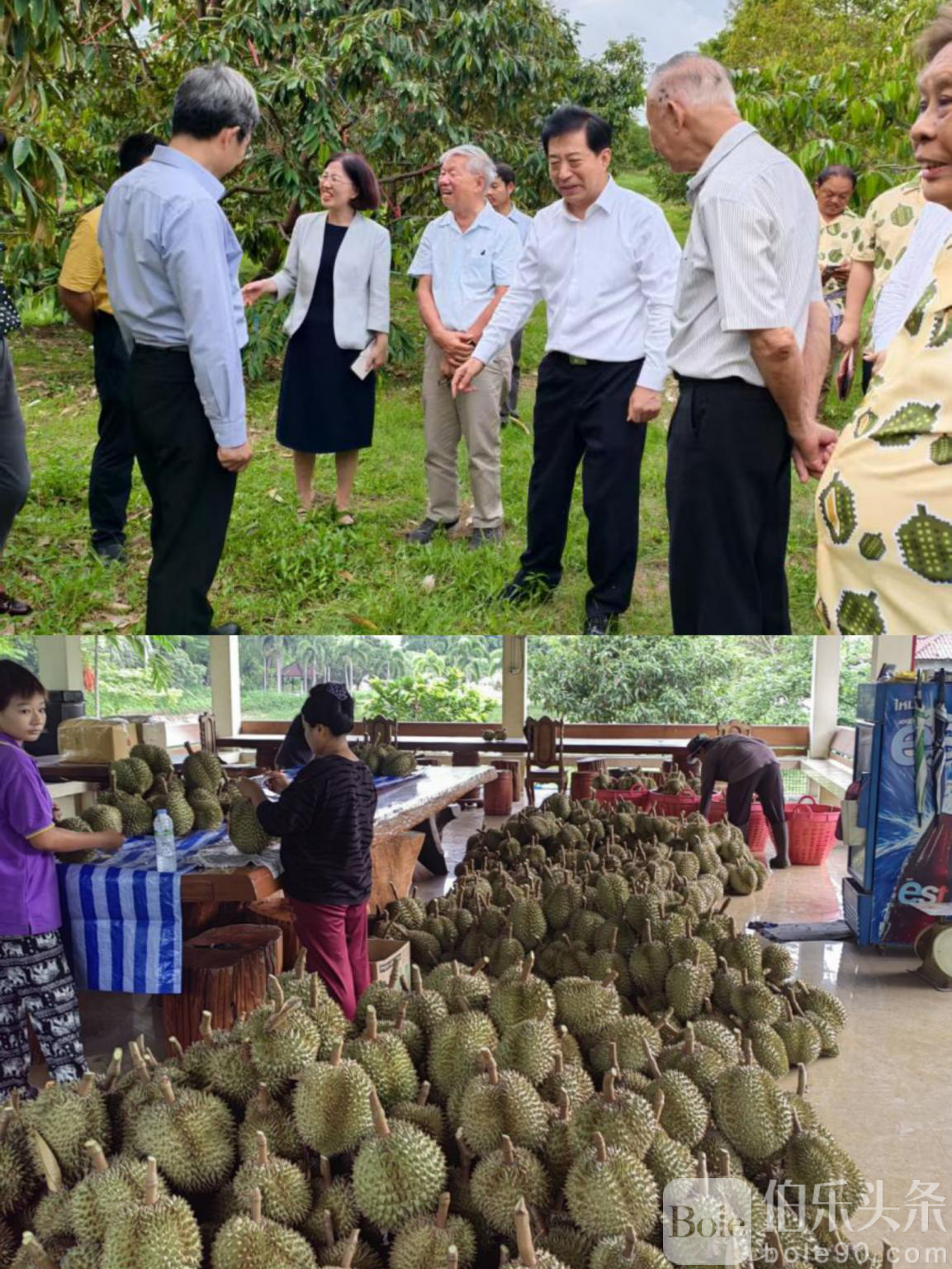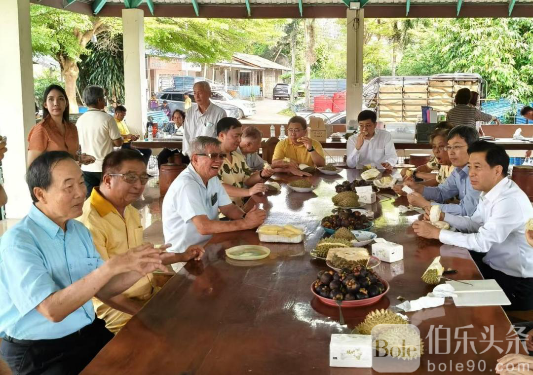 伯乐头条专讯:5月19日,韩志强大使前往泰国东部罗勇府榴莲园,考察榴莲种植、收获和出口等情况,并同榴莲园主和园农交流。