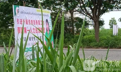 伯乐头条专讯:5月23日下午18:30,泰国巴真府消息传出,当地卡宾武里县304号公路附近一处工业园区前,被发现竖立着两块用中文书写的广告牌,内容写明“引进外国劳务到泰国工作”,并附带联系电话。该广告引起过往民众强烈不满,怀疑与非法劳工或灰色产业有关,随即向有关单位举报。