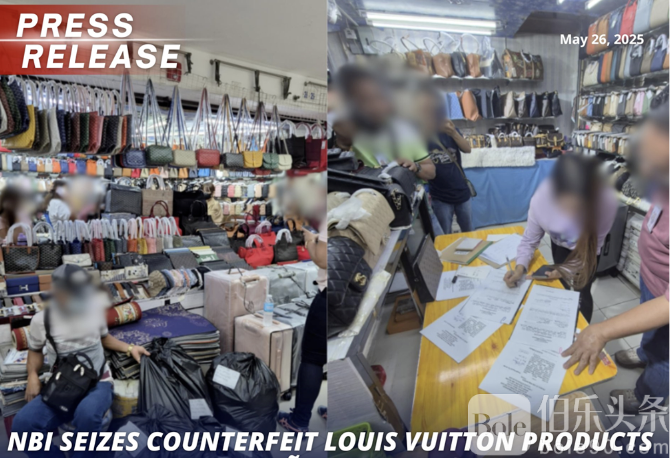 伯乐头条专讯:菲律宾国家调查局(NBI)知识产权权利部(IPRD)近日在马尼拉与帕拉纳克市同步展开联合执法行动,成功查扣大量假冒路易威登(Louis Vuitton)商品,市值超过1.2亿披索。