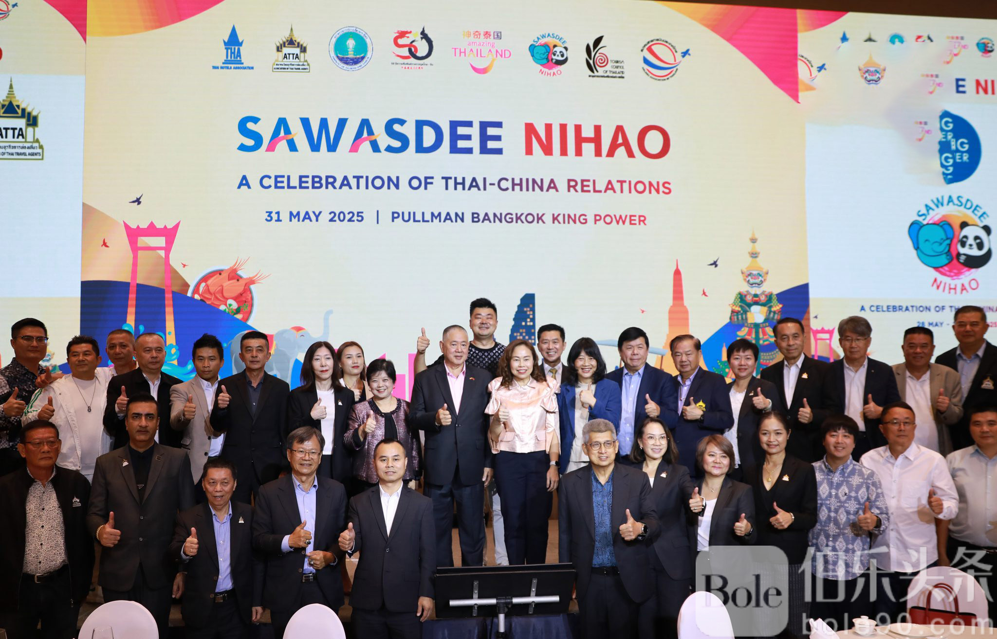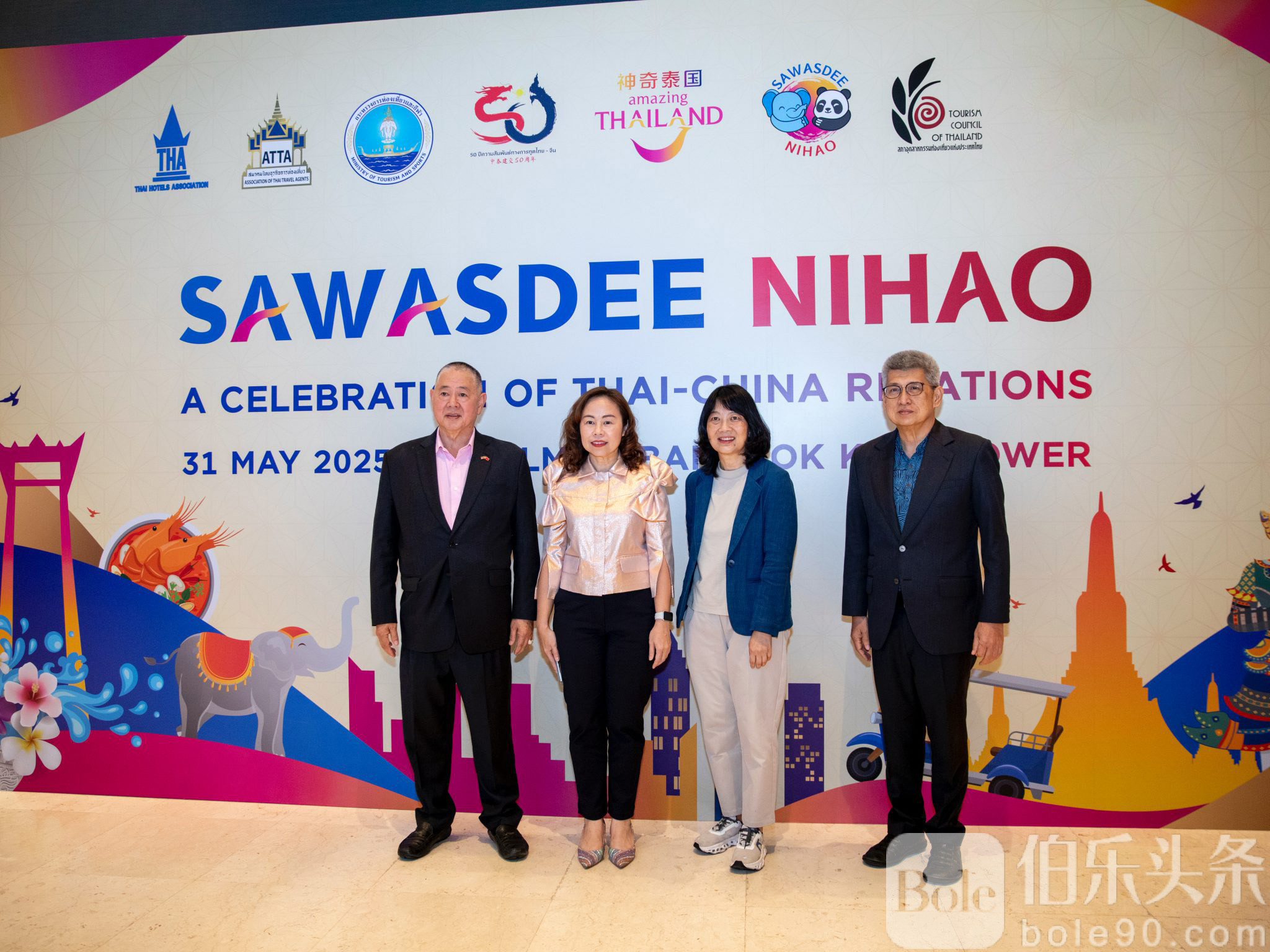 伯乐头条专讯:5月31日,由泰国国家旅游局、泰国旅游观光协会、泰国酒店协会及泰国旅游业联合会联合主办的“庆祝中泰建交50周年——萨瓦滴·你好”招待晚宴在曼谷王权Pullman酒店隆重举行。来自中国的旅游业专业人士、媒体代表及泰国各界嘉宾齐聚一堂,共同见证中泰旅游合作再启新篇。