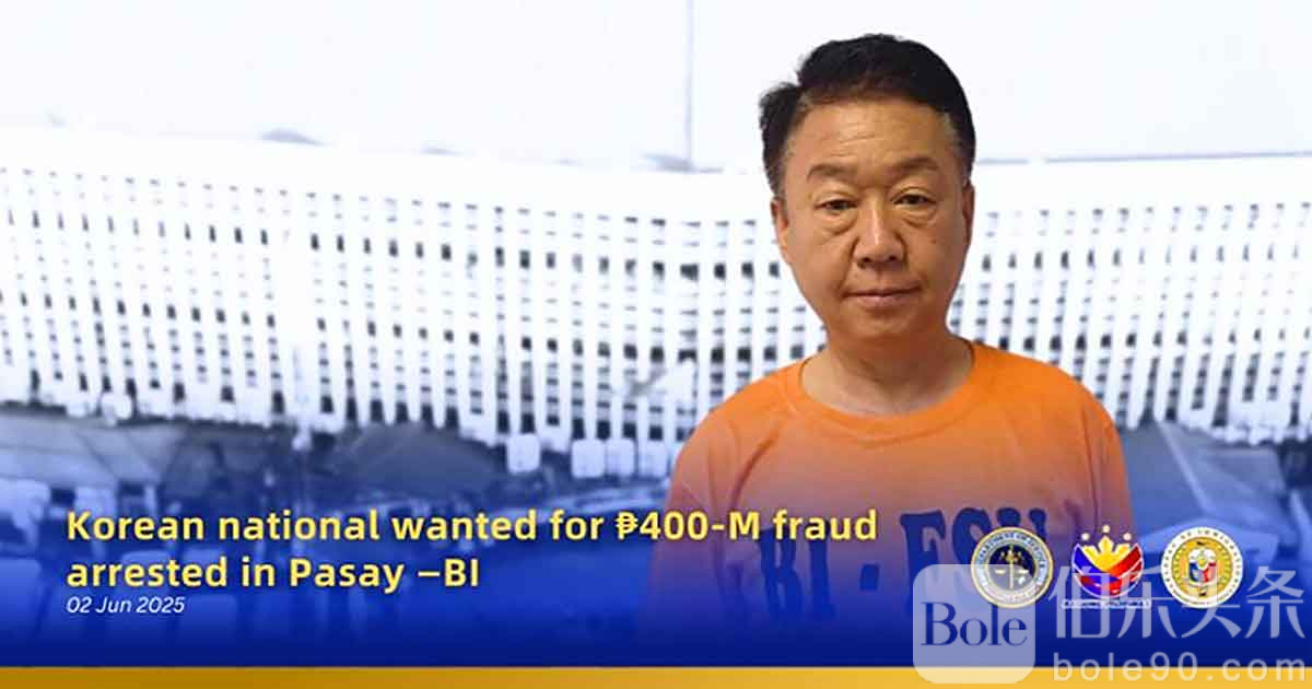 伯乐头条专讯:菲律宾移民局于周五上午在马尼拉帕赛市逮捕了一名韩国籍男子,该人因涉及超过4亿比索的大规模诈骗案被韩国政府通缉。此次抓捕行动由移民局逃犯搜捕组执行,并得到了韩国检方及菲律宾空军的协助。