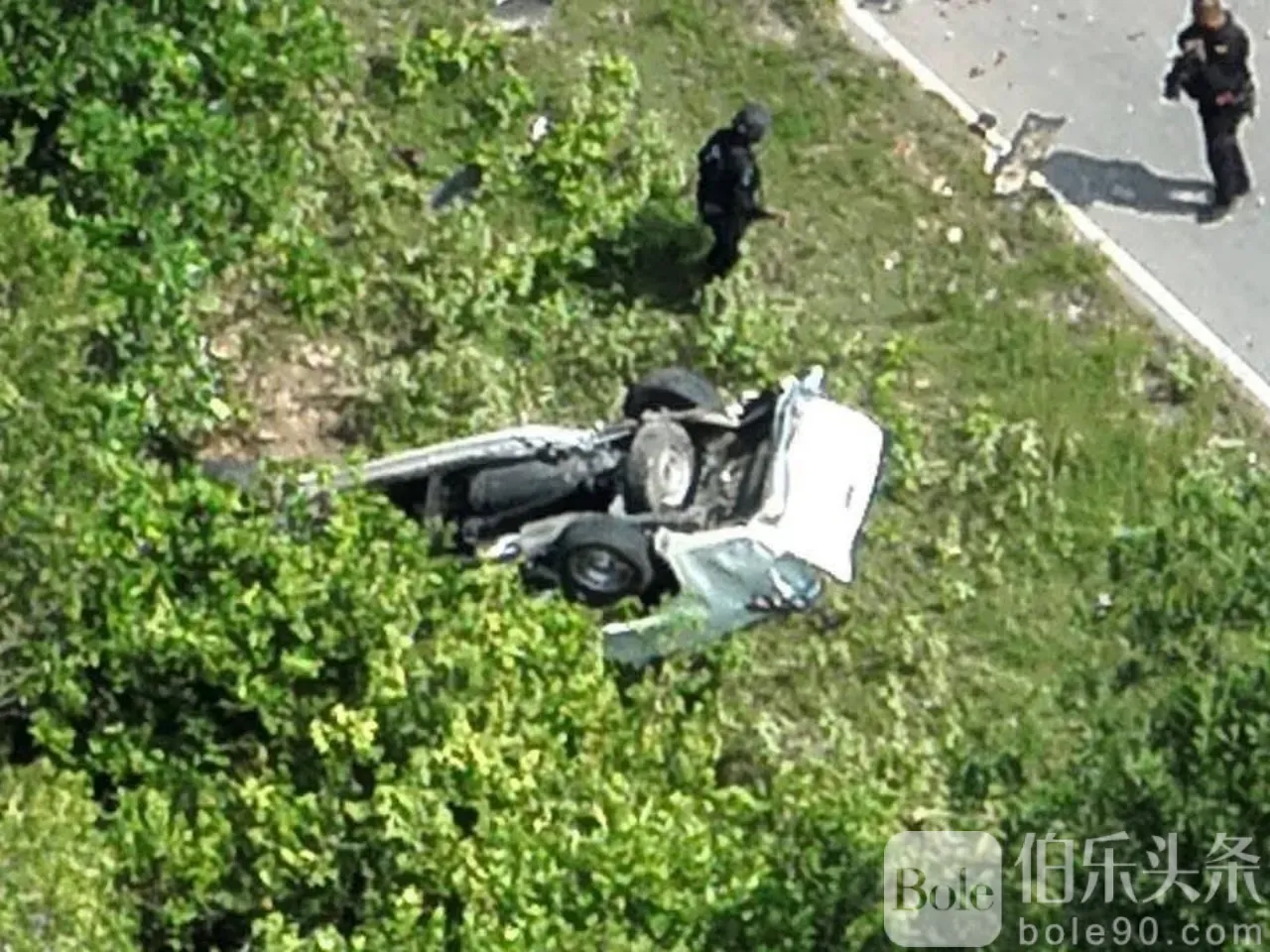 警方现场发现,一辆白色丰田四门皮卡已被炸飞至路边灌木丛中,车辆严重损毁,车内血迹斑斑。爆炸产生的冲击力在地面炸出一个直径3米、深1米的弹坑,炸弹碎片和弹片四散。执法人员已将相关物证收集作为调查依据。