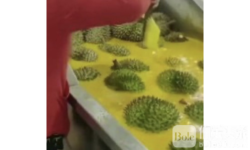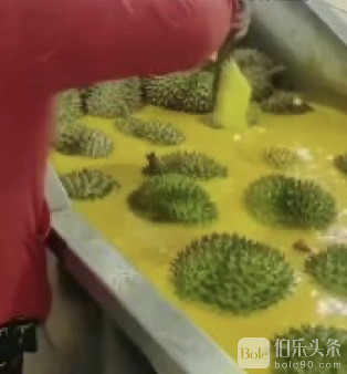 此次染色榴莲产品来源为东部尖竹汶府(Chanthaburi)某果园加工点,目前该果园已被勒令停业整顿,相关人员正在接受调查。