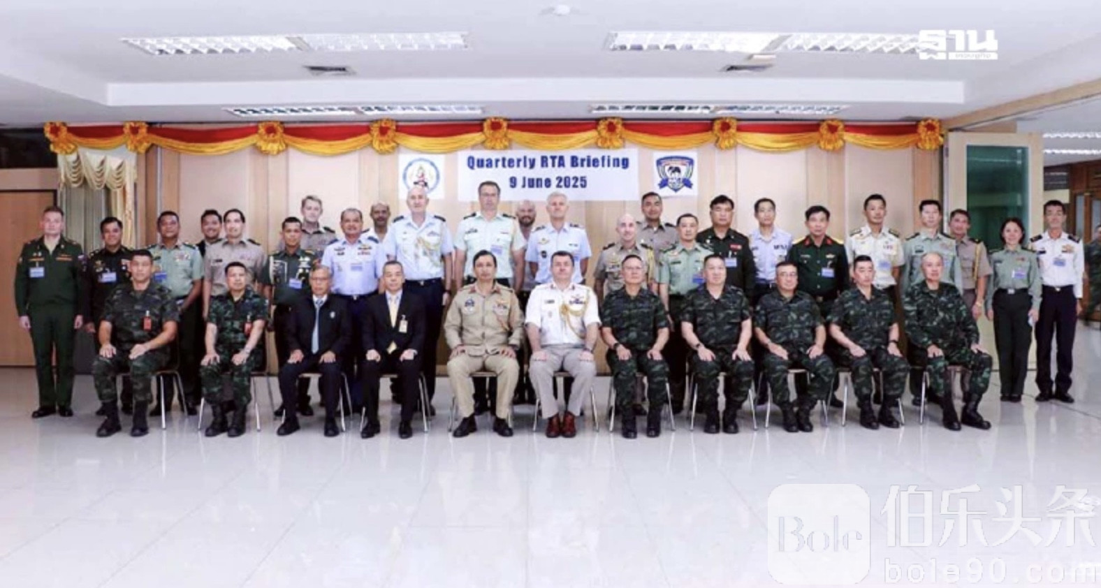 伯乐头条专讯:泰国陆军情报部于6月9日举行2025年度第三季度例行简报会(Quarterly RTA Briefing),会议由陆军情报部副司令甘猜中将(Lt. Gen. Kamchai)在该部总部会议室主持,向包括柬埔寨在内的47个国家的驻泰武官通报泰国南部局势及泰柬边境最新发展。
