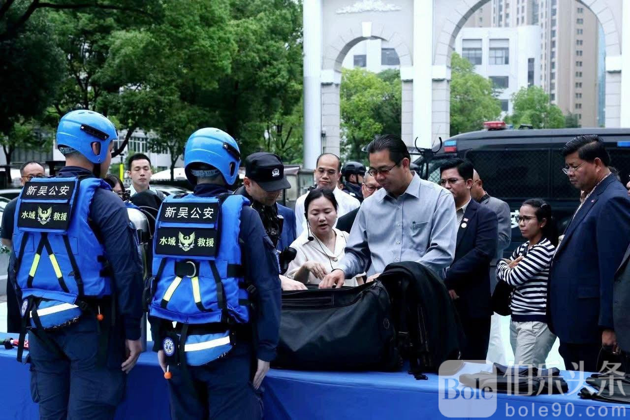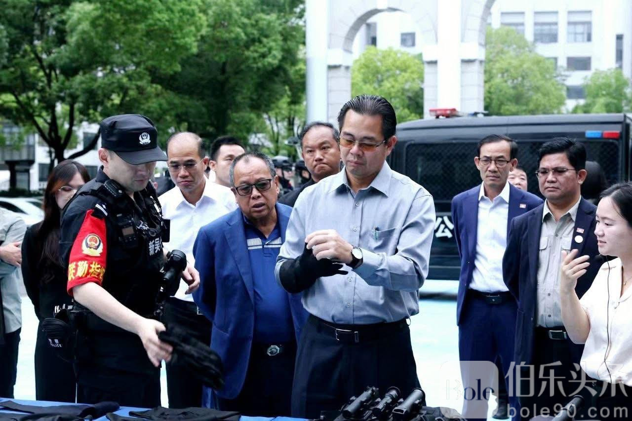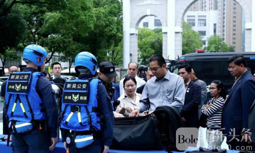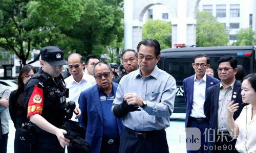 伯乐头条专讯:2025年6月9日,为推动公共安全建设迈向科技化发展,柬埔寨西哈努克省省长蒙西那(Kuoch Chamroeun)率代表团赴中国江苏无锡考察,重点了解先进的智能警务设备与城市治安管理经验。
