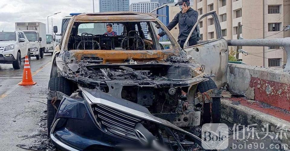 伯乐头条专讯:周四早上,这辆 SUV 在前往曼达卢永 Greenhills 的 EDSA 天桥上起火后完全被烧毁。
