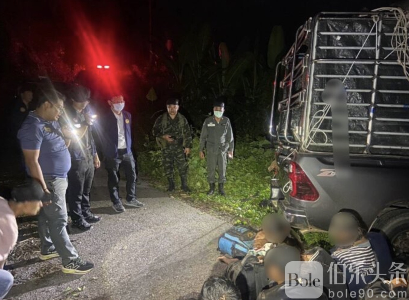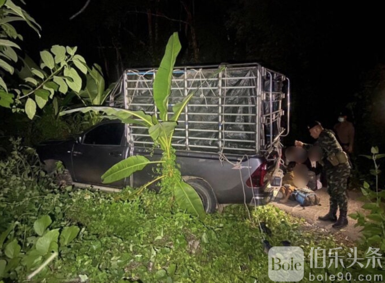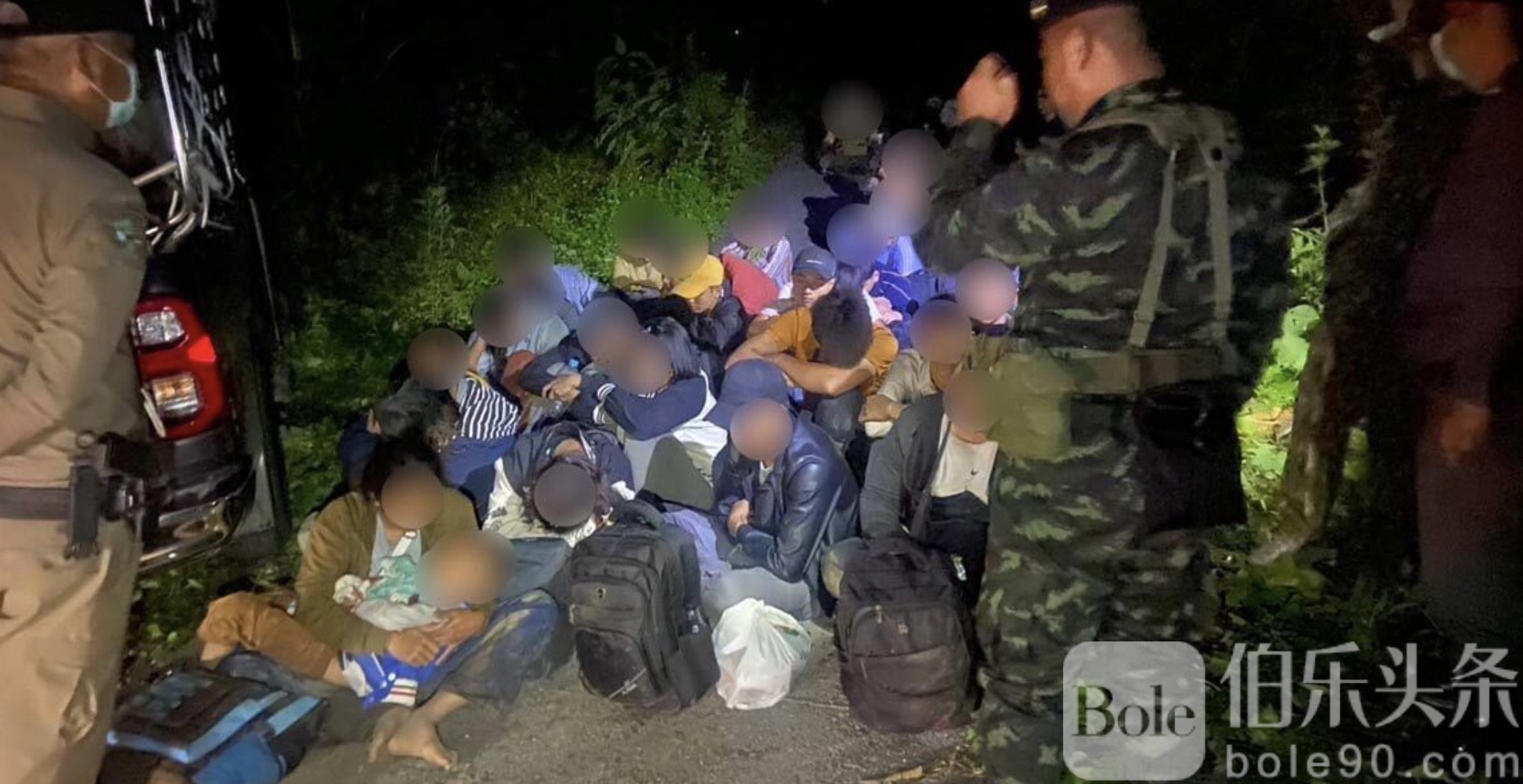 伯乐头条专讯:6月12日,泰国第九步兵师联合北碧府警方在通帕蓬县展开突袭,抓获29名非法入境的缅甸劳工。这群劳工承认通过“人头账户”支付每人7万泰铢的偷渡费用,企图以泰国为中转站前往马来西亚。警方在追查过程中截停了可疑皮卡车,司机弃车逃入森林。