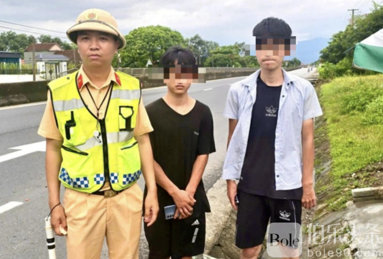 越南河静省公安厅交通警察部门于6月13日下午在奇英县1A国道巡逻时,发现两名形迹可疑的青年在道路上逆行行走。两人赤脚、衣着凌乱,神情疲惫,明显处于迷路状态。交警随即上前询问,并将他们带离现场做进一步核查。
