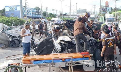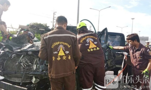 伯乐头条专讯:一名年轻男子被发现死在一辆皮卡车的残骸中。当时,这辆皮卡车突然越过中间隔离带,冲入对向车道,正面撞上迎面驶来的车辆,造成包括他在内的3人死亡。这起事故发生在佛统府的Phetkasem路上,现场画面令人毛骨悚然。