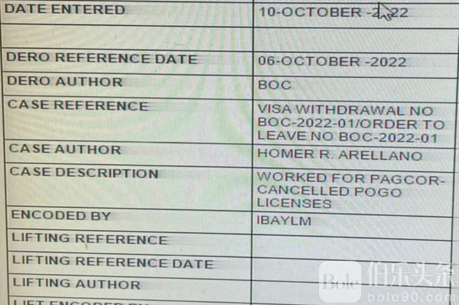 根据菲律宾移民局早期通知:所有持有或曾持有POGO/IGL工作签证的外国人,若未在2024年12月31日前完成合法出境申报,均会被自动列入ALO名单。
