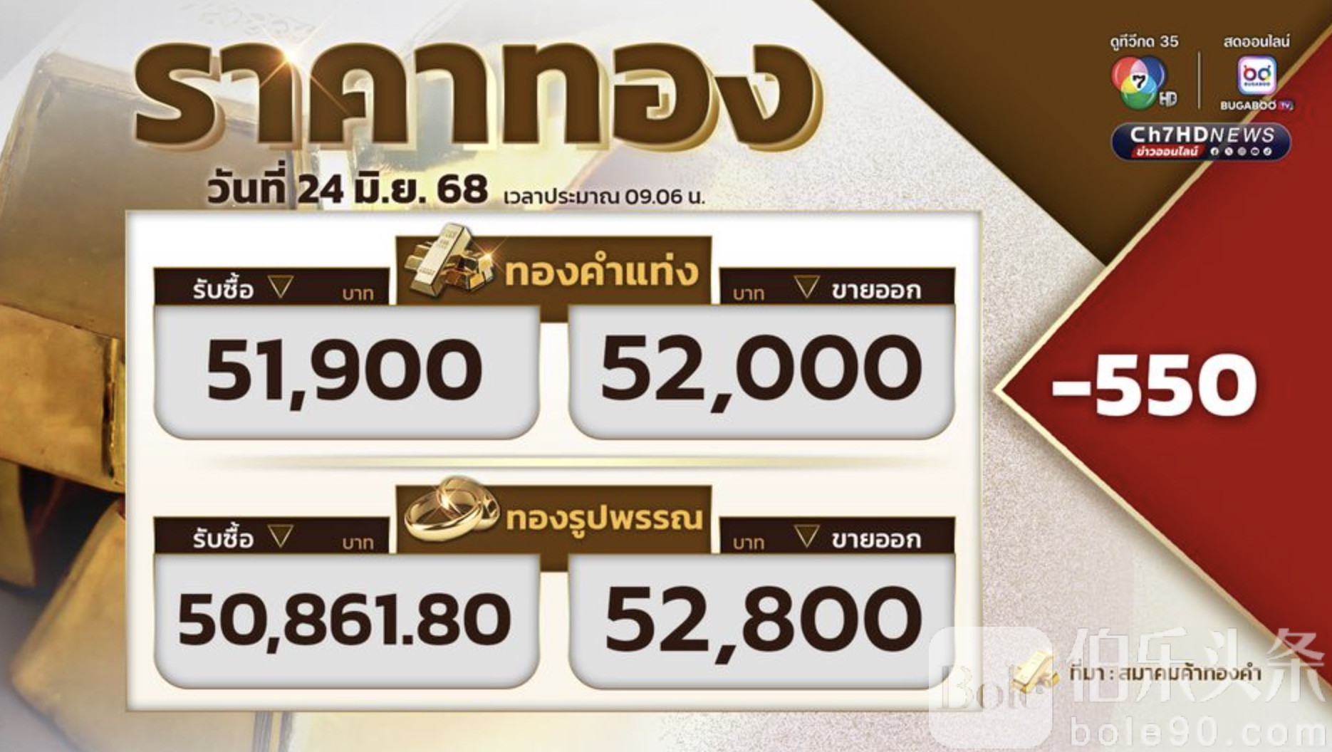 伯乐头条专讯:2025624日,泰国黄金市场开盘出现明显调整,金价单日下跌550泰铢,创下近期最大单日跌幅。