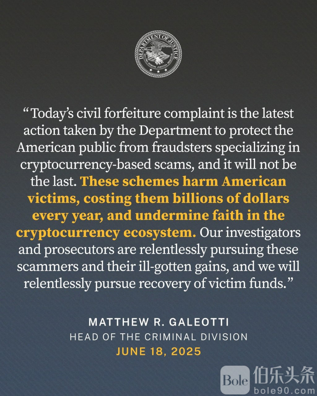 伯乐头条专讯:美国司法部近日宣布,成功查封一起跨国加密货币诈骗案件中的资产,总金额高达2.253亿美元。该诈骗集团行动据点位于菲律宾大马尼拉地区,是近年来最大规模的“杀猪盘”类诈骗之一。已有超过400人受害,其中一名美国银行高管因此案被判24年重刑,涉案银行也因此破产。