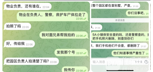 他还指出,这是该园区近期发生的第二起命案。据称不久前园区内一名女性物业人员也遭到保安毒打致死,手段极其残忍,园区方面事后封锁消息,试图掩盖事实。