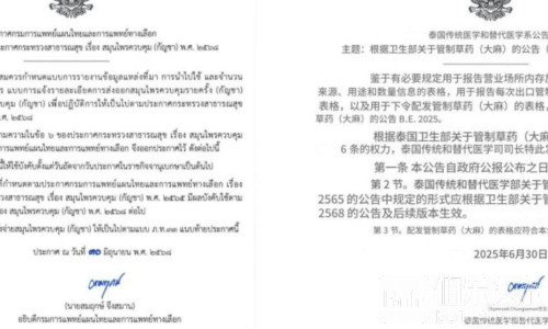伯乐头条专讯:泰国传统和替代医学部近日发布医用大麻新规,正式取消了对15种适应症的限制,医生开方自主权大幅提升。根据2025年管制草药(大麻)公告,所有持证医生必须使用统一的标准化处方表,详细记录患者信息、诊断结果、剂量及疗程(最长30天),并明确开具的大麻花蕾总量。处方医生需提供姓名、执照号及地址,确保责任追溯。