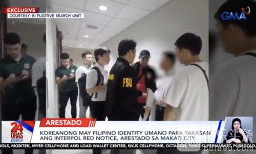 据GMA电视台《24 Oras Weekend》报道,马卡蒂市执法人员在例行稽查中发现一名韩国籍男子持有伪造的菲律宾身份证明文件。经核查,该男子正是国际刑警红色通缉令通缉对象之一,涉嫌在韩国犯下重大刑事罪行,为逃避追捕而藏匿菲律宾,警方随即将其拘捕归案。