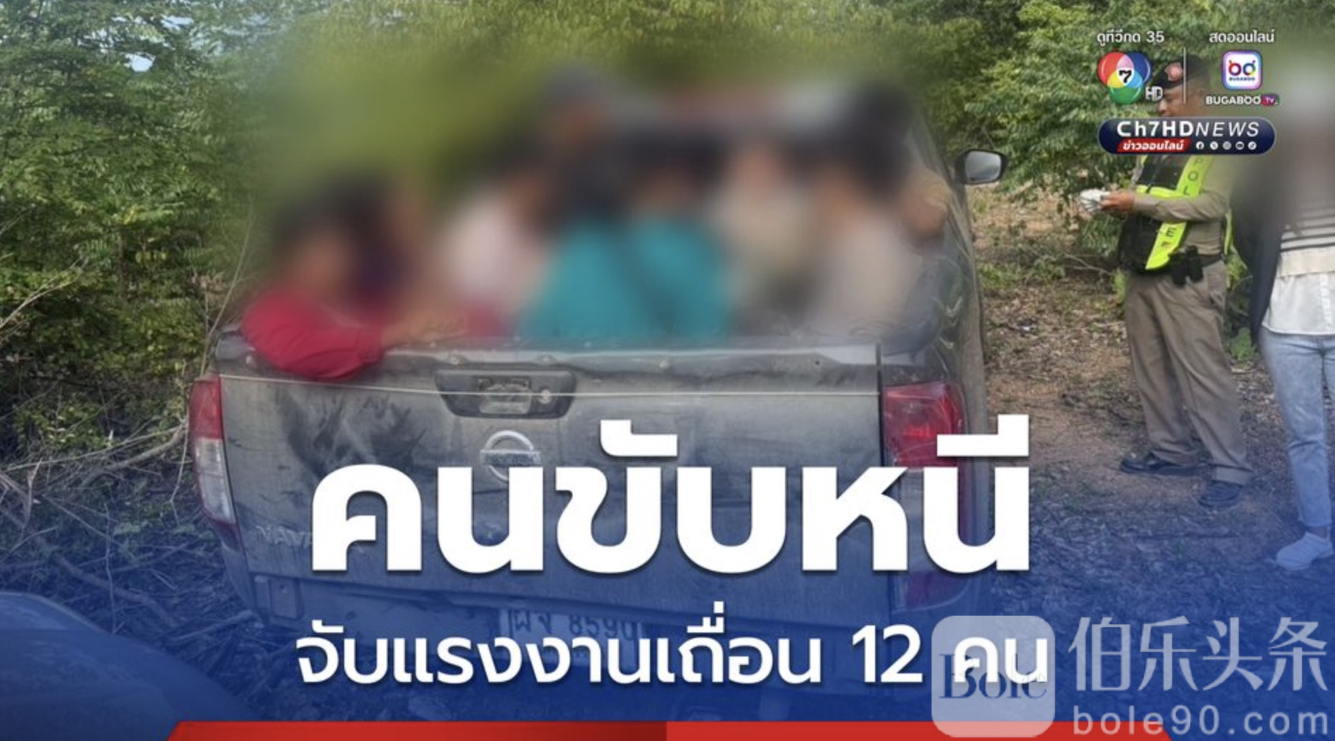 伯乐头条专讯:7月15日,泰国中部一场针对非法劳工的突袭行动惊现惊人细节!泰国高速公路警察突袭查获一辆载有12名非法入境人员的黑色皮卡车,司机趁混乱逃入山林,车内还发现多块伪造或调换的车牌,疑似为躲避追捕所用。