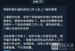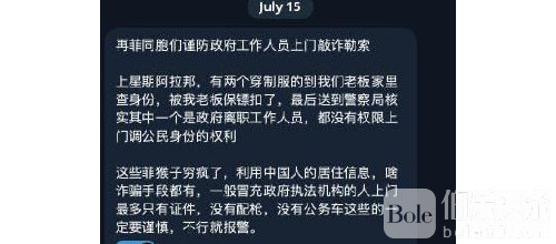 投稿者提醒,在菲律宾遇到自称执法机关人员上门的情况,务必核实其身份是否合法。正常执法人员应具备有效证件,通常还配有公务车及配枪。一旦发现可疑,应立即报警处理,以免落入诈骗陷阱。