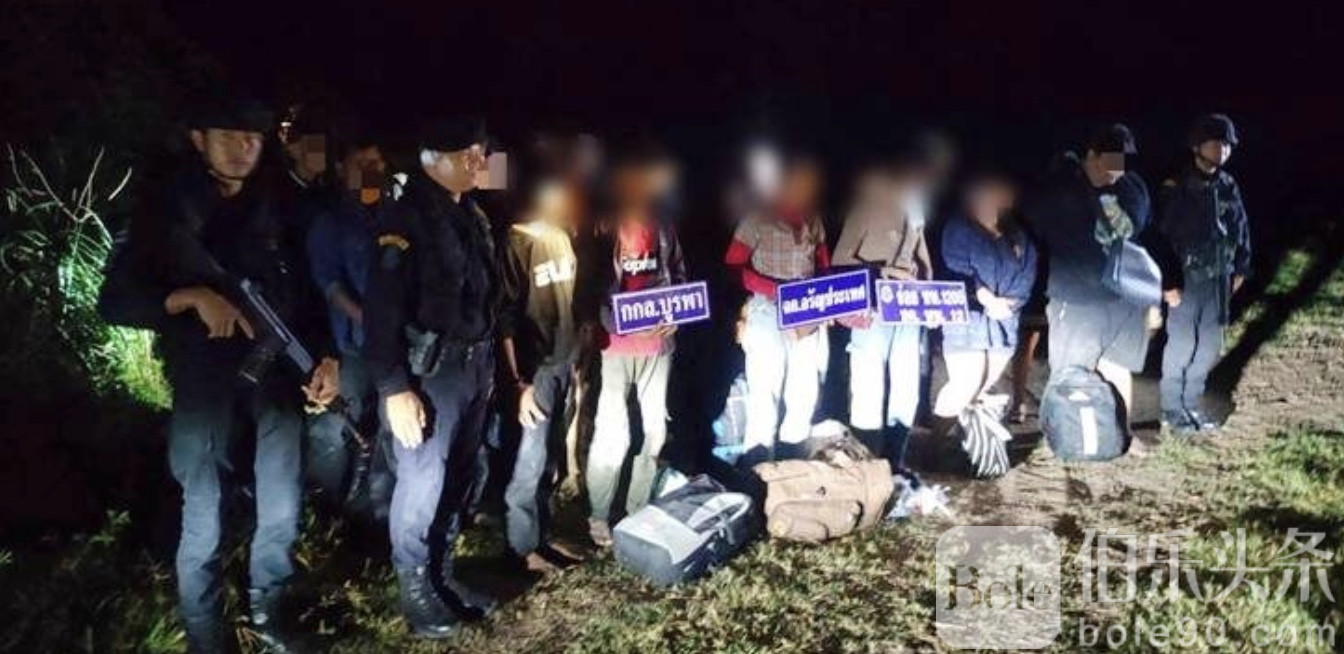 伯乐头条专讯:7月17日深夜至凌晨,泰国军方在沙缴府与柬埔寨交界地区展开连续三轮行动,一夜之间共查获非法入境人员38人,震撼边境执法圈。被捕者中不乏非法劳工、博彩网站管理员、涉案在逃人员,甚至有家长带着孩子一同穿越边境。