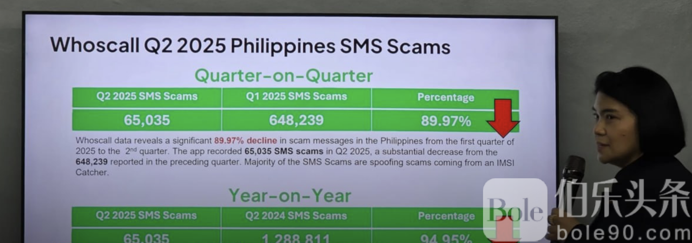 伯乐头条专讯:菲律宾网络犯罪调查协调中心(CICC)7月21日发布数据显示,菲律宾诈骗短信与电话案例在今年第二季度大幅减少,其中诈骗短信数量从去年同期的128万条锐减至6.5万条,下降幅度高达95%;诈骗电话也从13.5万通降至约3.5万通,降幅超过74%。