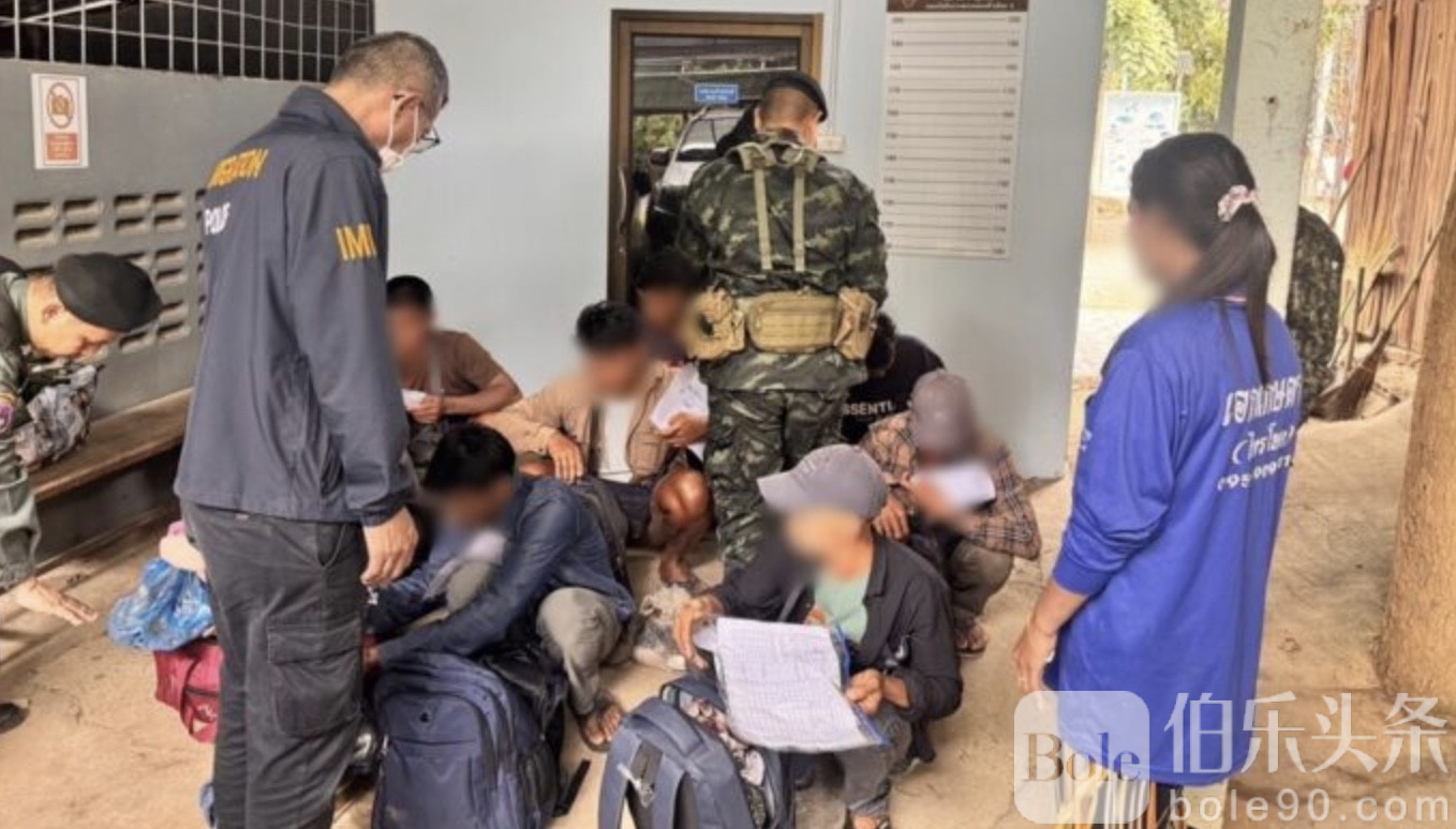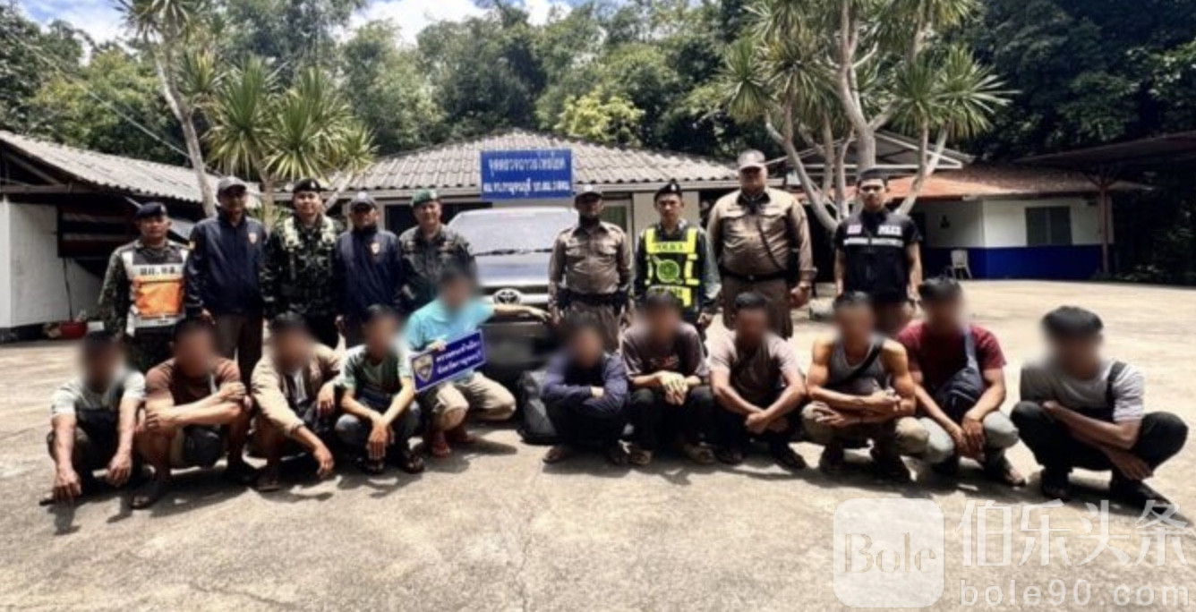 伯乐头条专讯:泰国边境再现大规模抓捕行动,16日,泰国甘加那武里府军警联合出动,对一批非法入境的缅甸劳工团伙实施抓捕,共计20人被当场控制。此次行动由甘加那武里府副州长及第9步兵师指挥官亲自协调,结合当地警方、边防部队及地方行政力量在泰国-缅甸边境设立检查点和巡逻点,成功拦截多起非法运输事件。