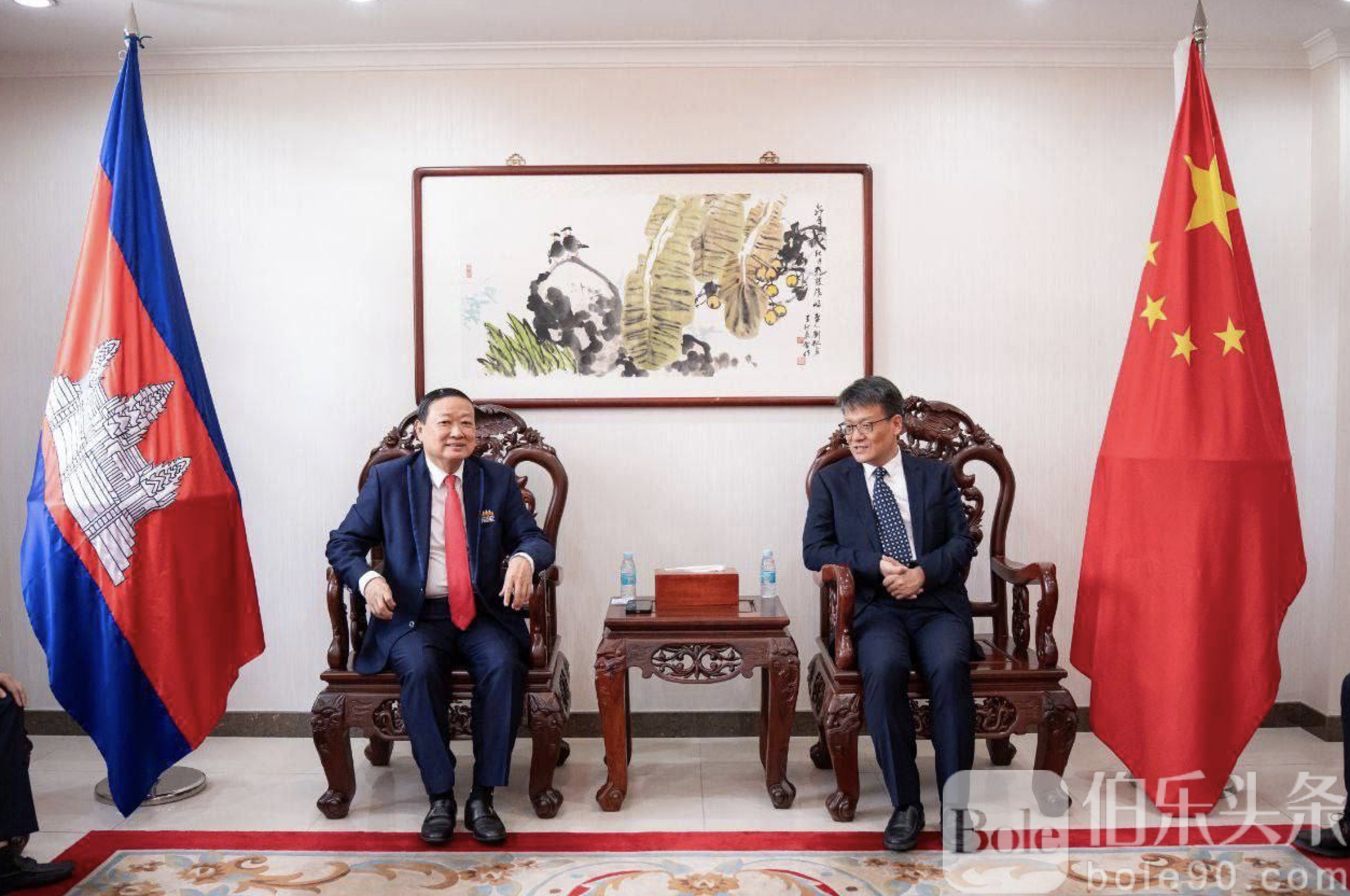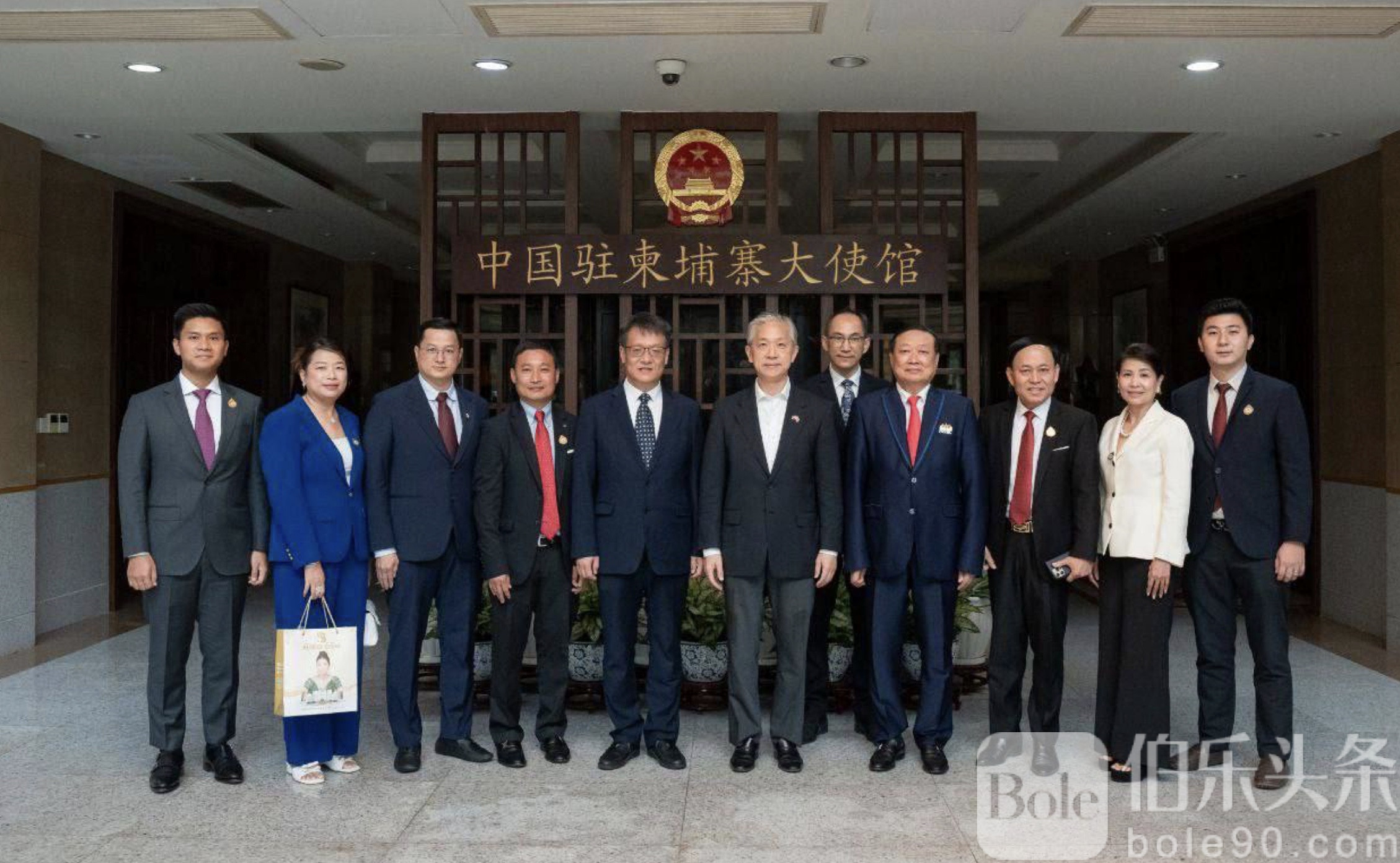 伯乐头条专讯:近日,柬埔寨中小企业协会会长兼Samdech Techo基金会董事会主席德泰波勋爵率领理事会成员,拜会了中国驻柬埔寨大使汪文斌,并与大使馆总参赞赵海燕进行了工作会谈。