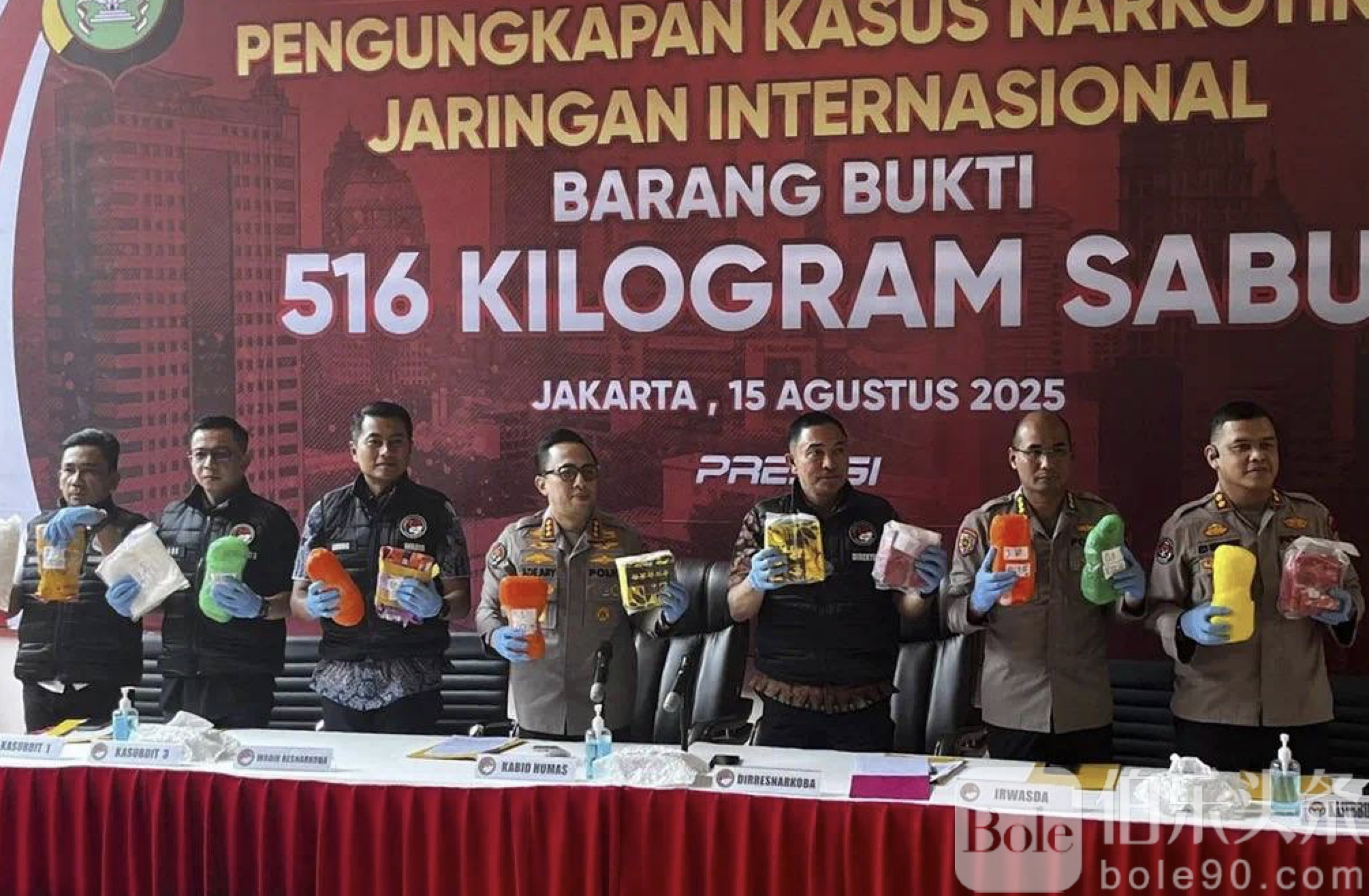 伯乐头条专讯:近日,印尼雅加达警方成功破获一起特大跨国贩毒案,摧毁横跨伊朗、中国、马来西亚及印尼的国际毒品网络,查获冰毒516公斤,案值约5160亿印尼盾(约合人民币2.4亿元)。