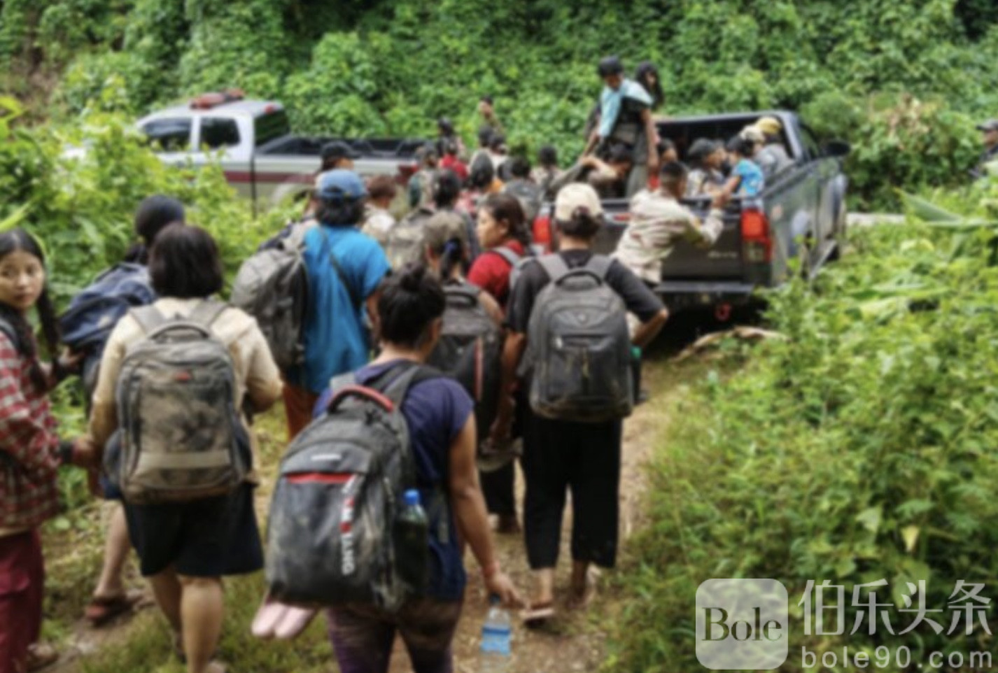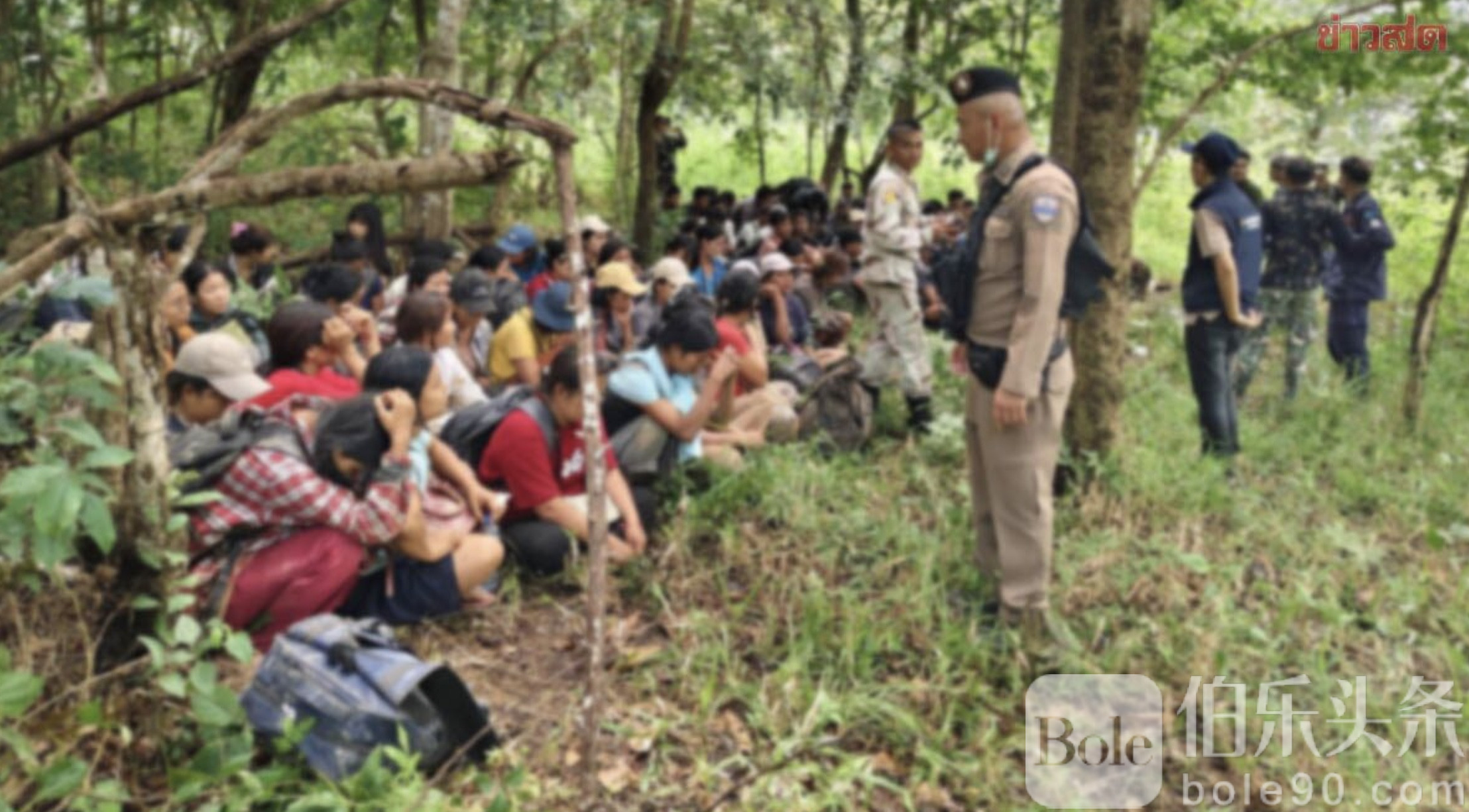 伯乐头条专讯:泰国警方8月25日下午在北碧府(甘烹碧府)边境密林中成功抓获整整100名非法入境的缅甸劳工。这批偷渡者男女混合,为了进入泰国,他们徒步跋涉4天3夜,翻山越岭、乘车坐船,甚至躲进深山密林,最终还是被泰国执法部门一网打尽。